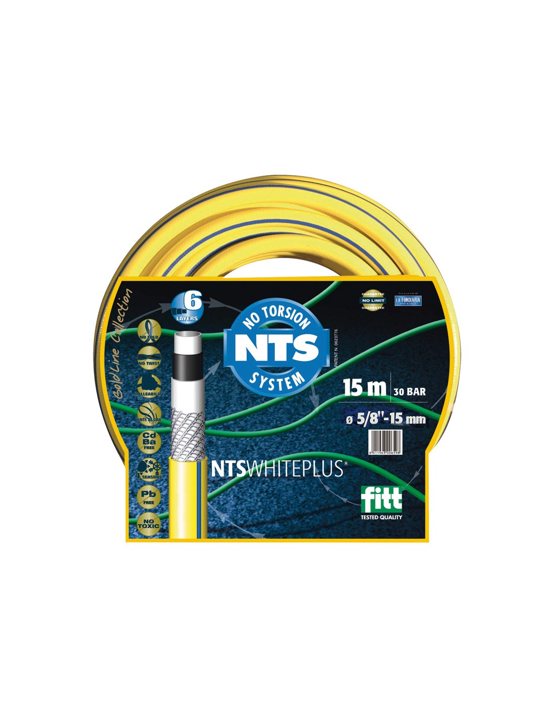 Manguera riego No Torsion FITT Yellow Sistema NTS. Calidad alimentaria. Antialgas. No se retuerce ni estrangula. Color blanco interior, amarillo exterior. ø 15 mm. x 15 m.