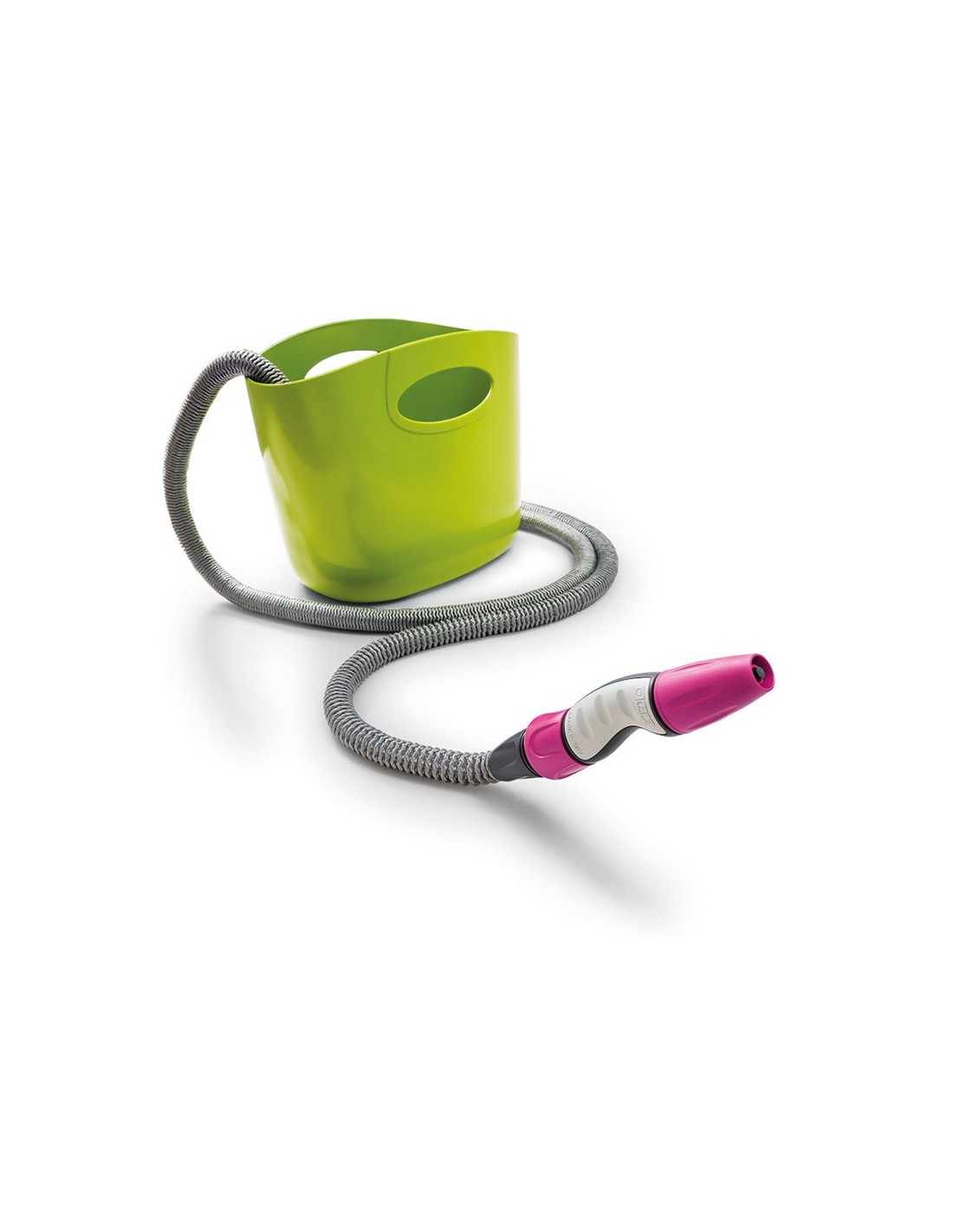 Kit manguera extensible Aquapop 15 m. Con mini pistola de riego y rácores de conexión. Toma grifo 3/4". Lima.