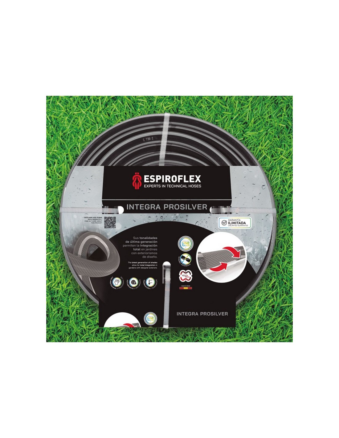 Manguera Touch Prosilver Sine Torsion No se retuerce ni se estrangla. Incluye racor hembra, 2 conectores y lanza de riego. ø 15 x 25 m.