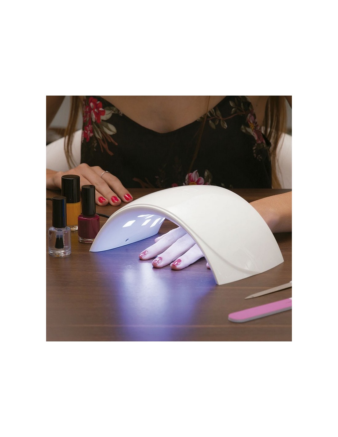 Lámpara Led UV profesional para uñas INNOVAGOODS ABS. Sensor de presencia. Temporizador 30/60 sg. 15 led/UV dual. Longitud onda: 365 nm-405 nm. Apto esmalte, gel y Shellac. Vida útil 50000 h. 24 W.