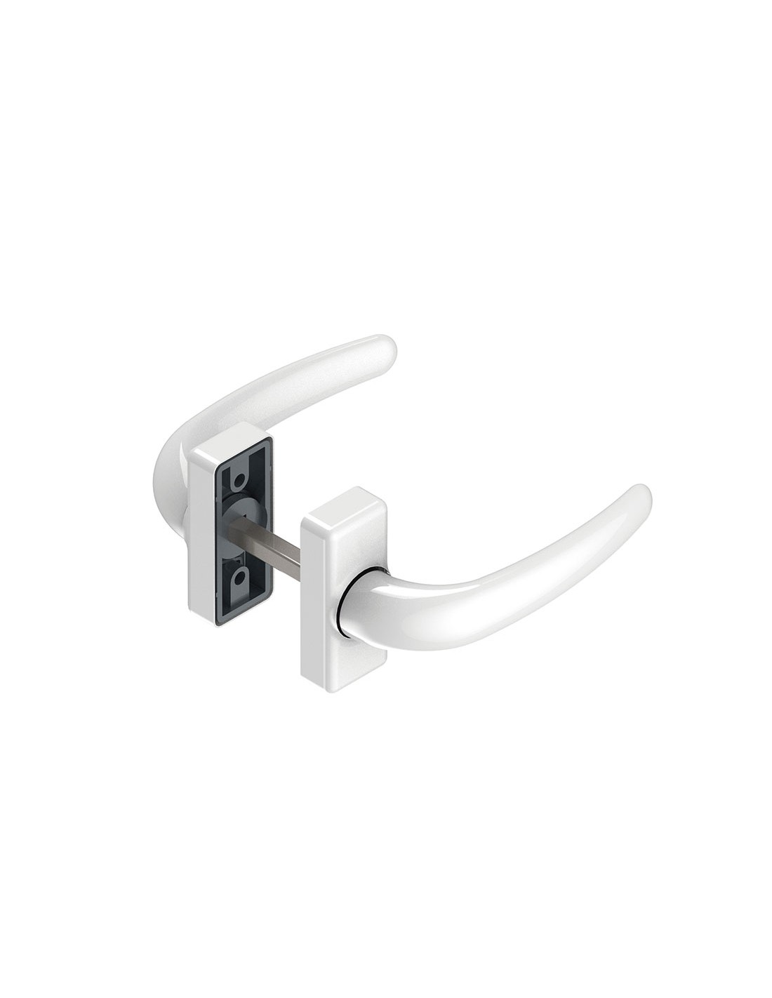 Manilla carpintería aluminio ALMA 6080 Aluminio fundido. Juego con escudo y muelle. 132x57xh.73 mm. Blanco.