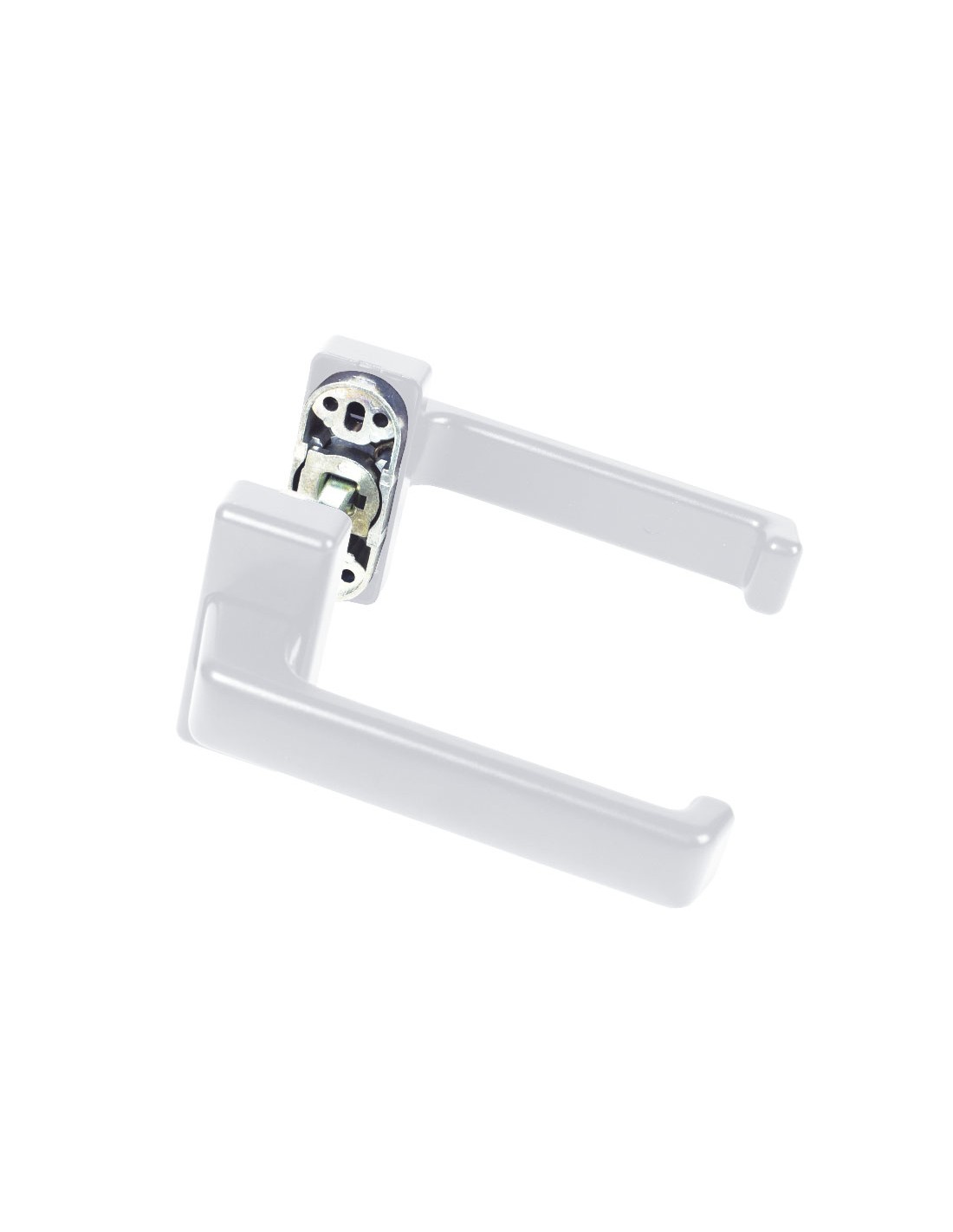 Manilla carpintería aluminio ALMA 2080. Aluminio fundido. Cuadradillo 8 mm. Juego con escudo y muelle. 138x47xh.73 mm. Blanco.