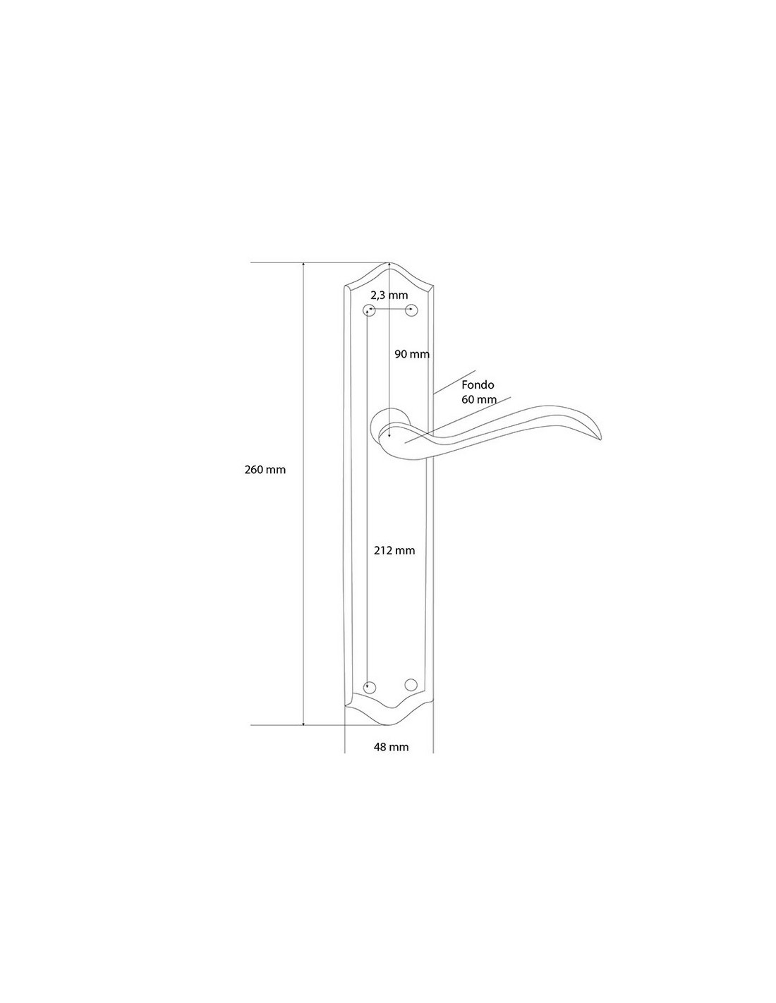 MANILLA C/PLACA LATÓN. 49xh270 mm.