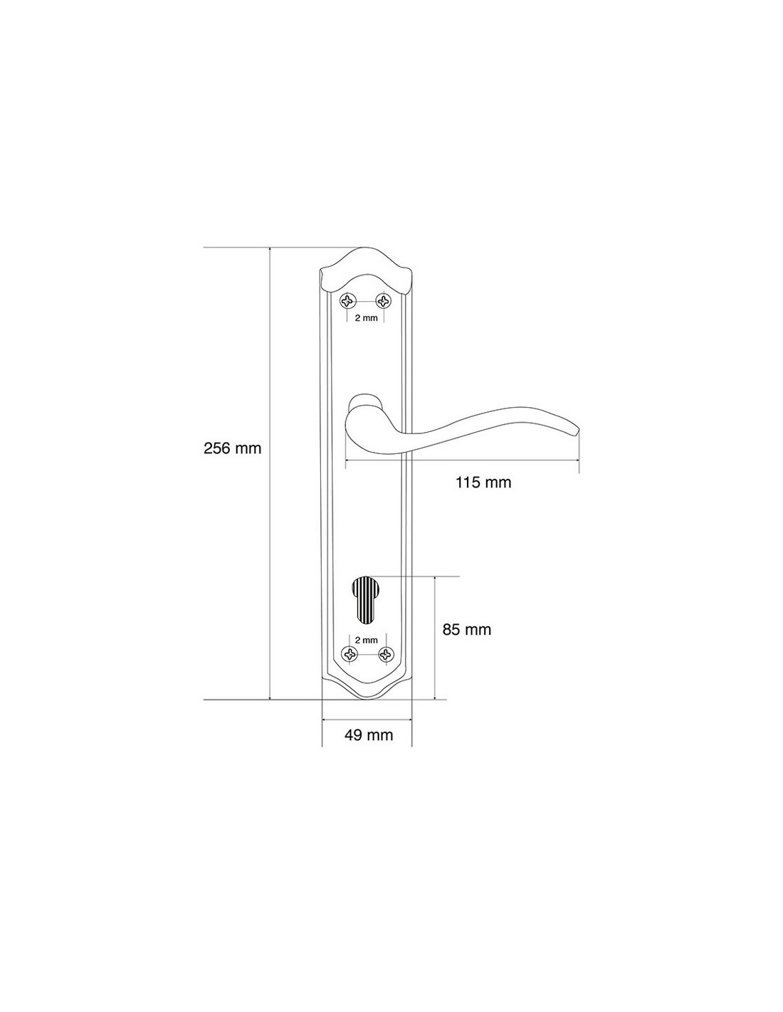 Manilla y complementos JANDEL EQUAL EQ-203 Hierro latonado. Manilla/bocallave 49xh.256 mm.