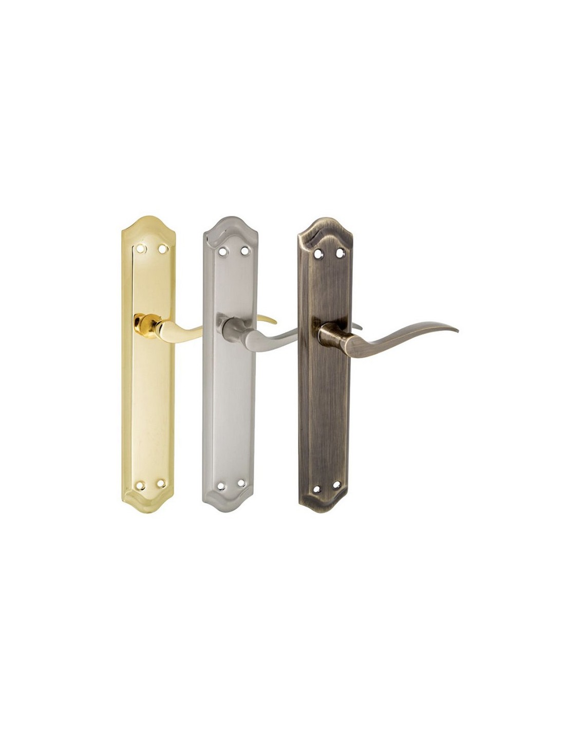 Manilla con placa MICEL 202 Placa de acero. Maneta en aluninio. Varios acabados. 47xh.256 mm. Latonado.