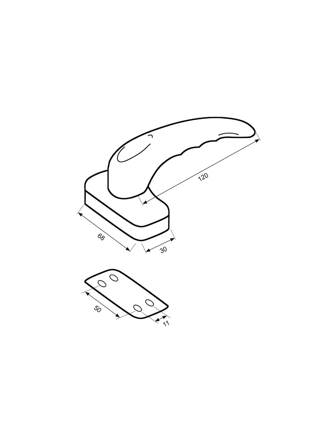 Manilla carpintería aluminio MICEL 6802. Aluminio. Blanco.120 mm.