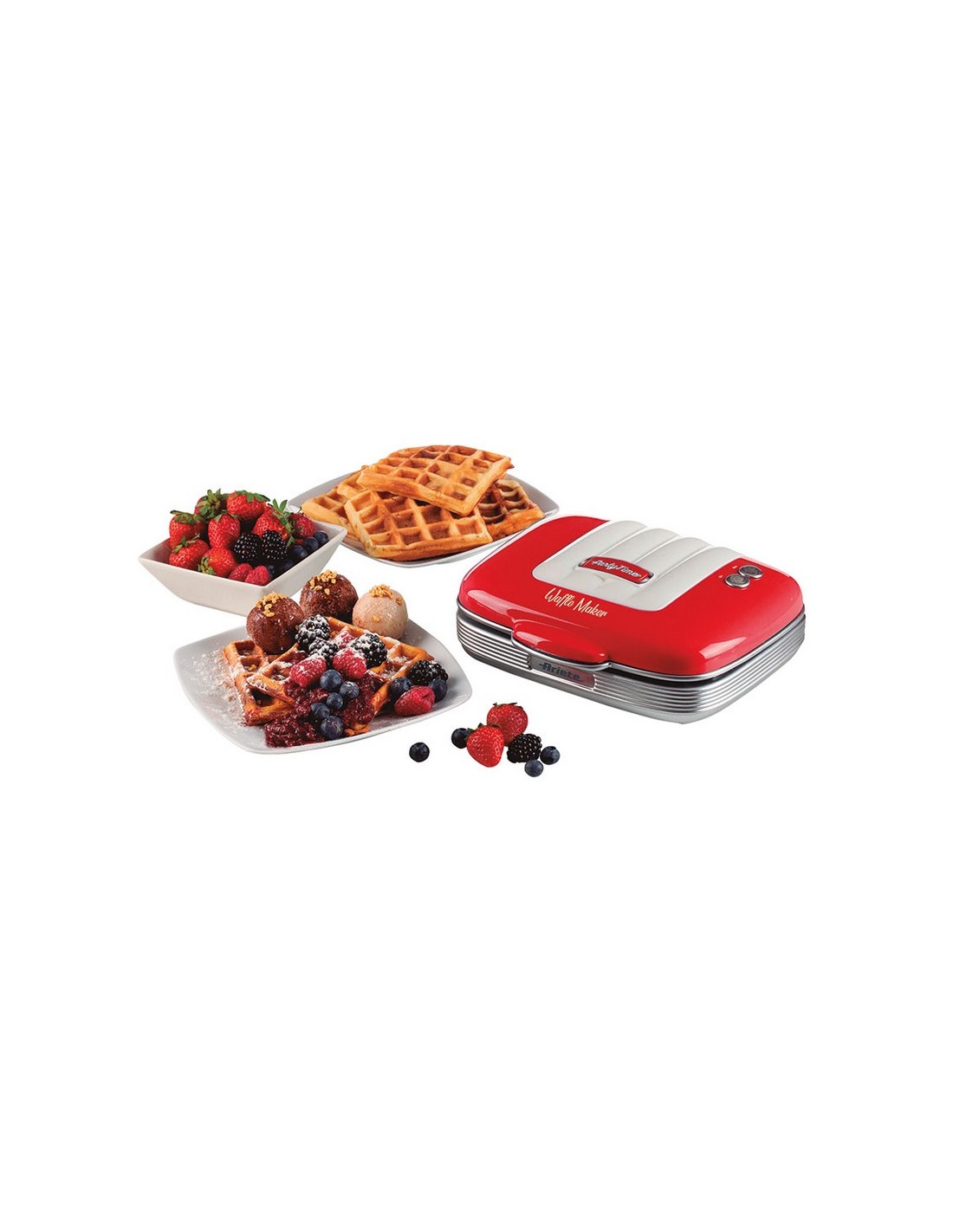Gofrera ARIETE Party Time 1973 Placas antiadherentes. Recogecables. Cierre seguridad. Color rojo. Potencia: 700 W.