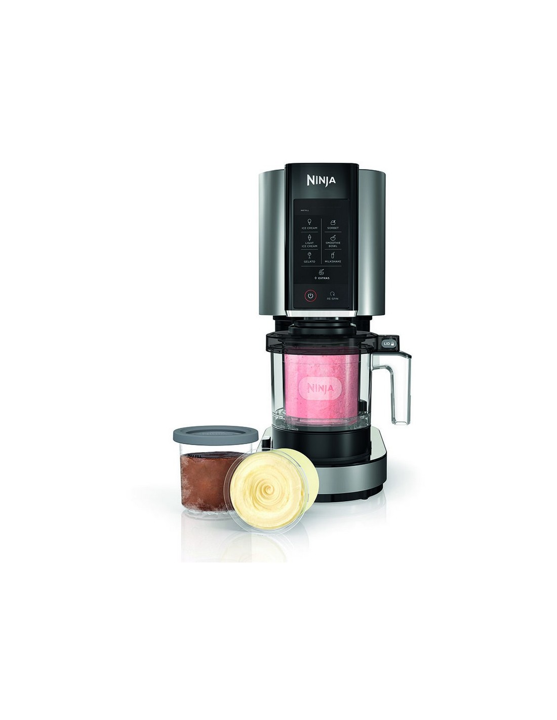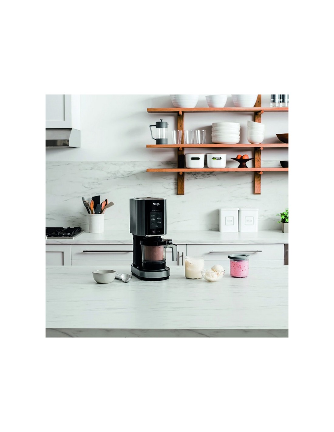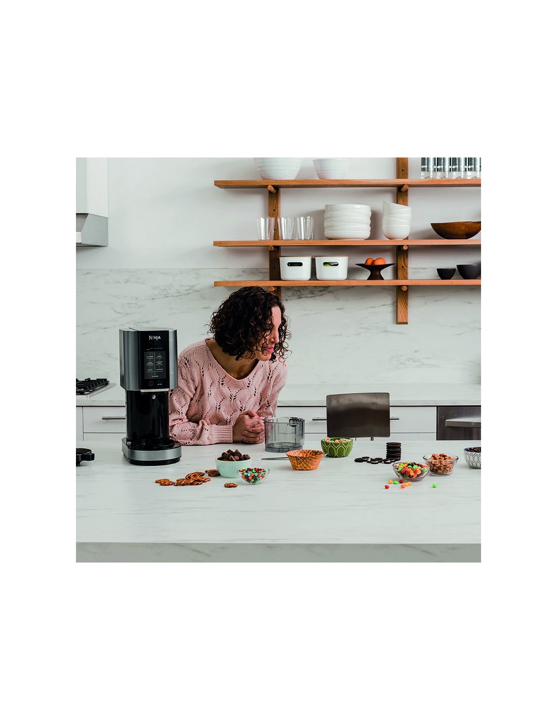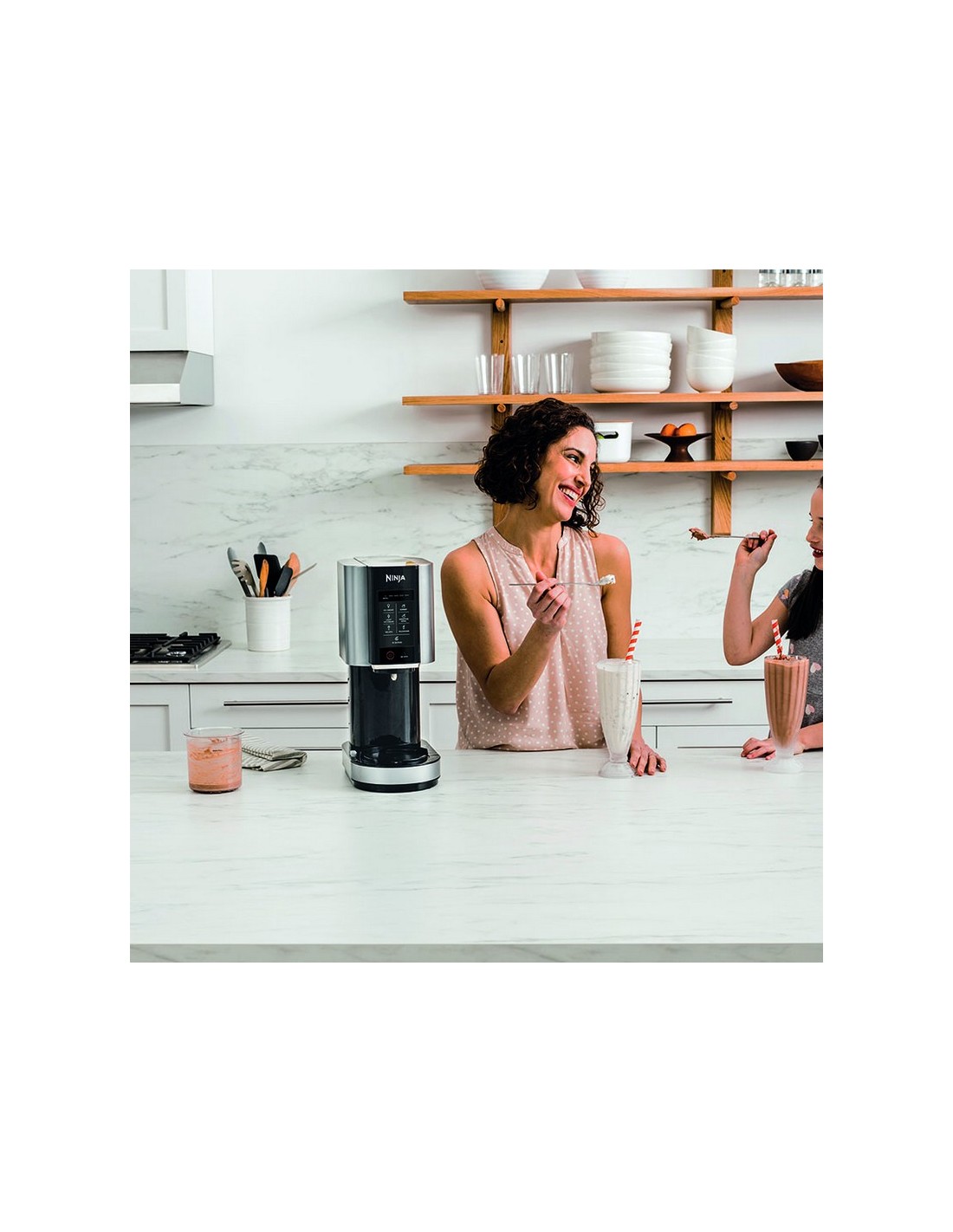 Heladera Ninja Creami 7 en 1. Incluye 3 tarrinas (sin BPA) con tapa, de 470 ml por tarrina. 88 cm de cable. 800 W.
