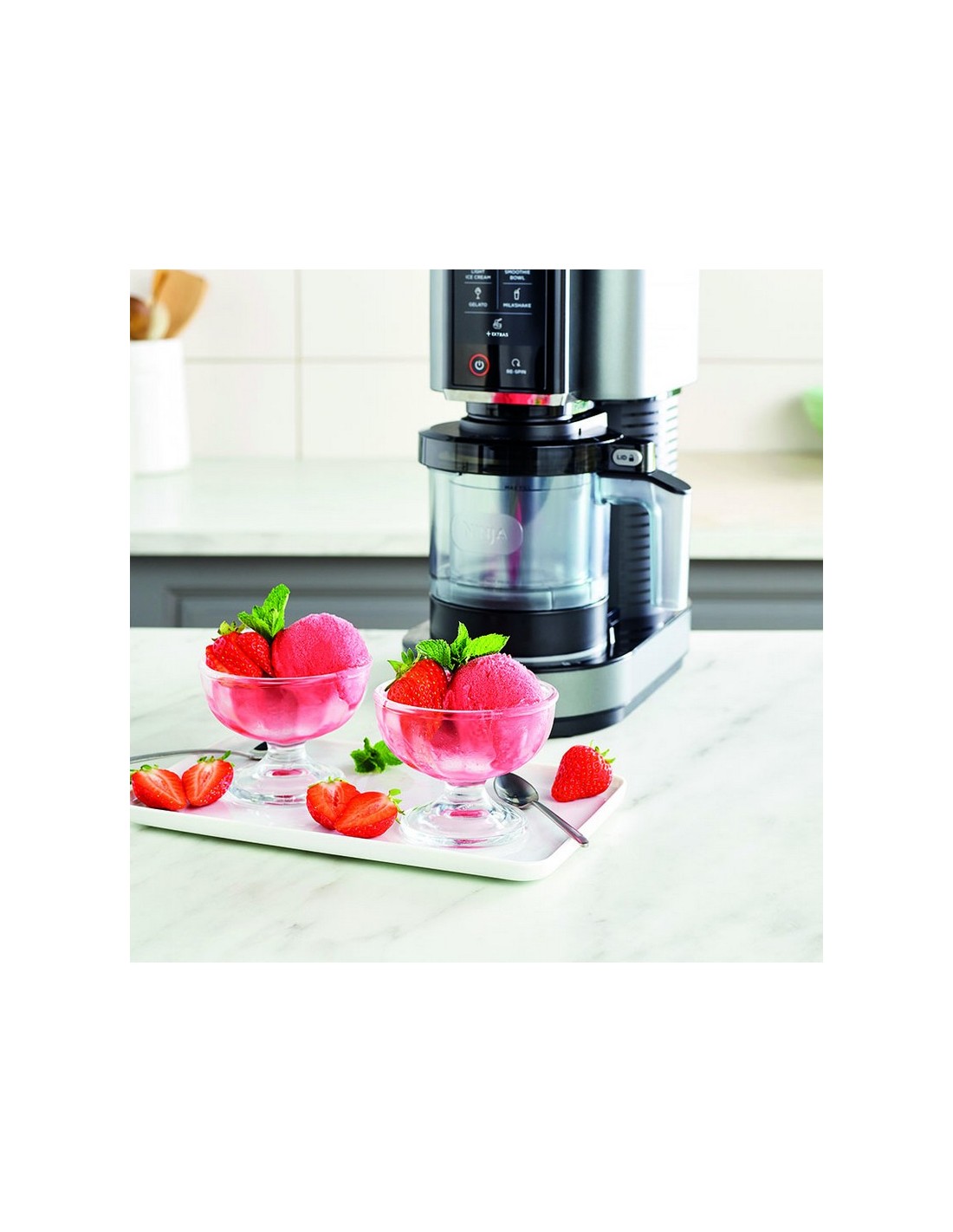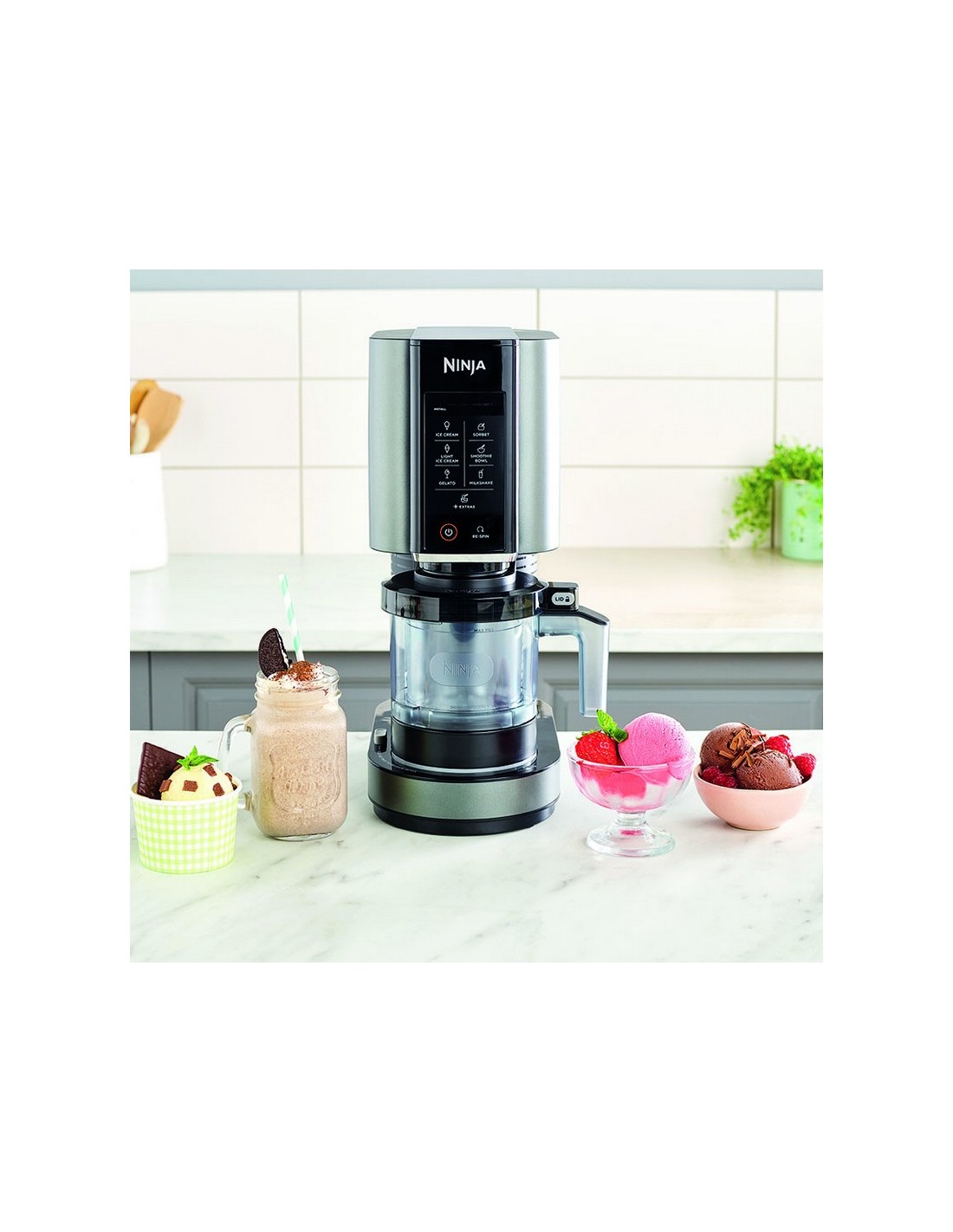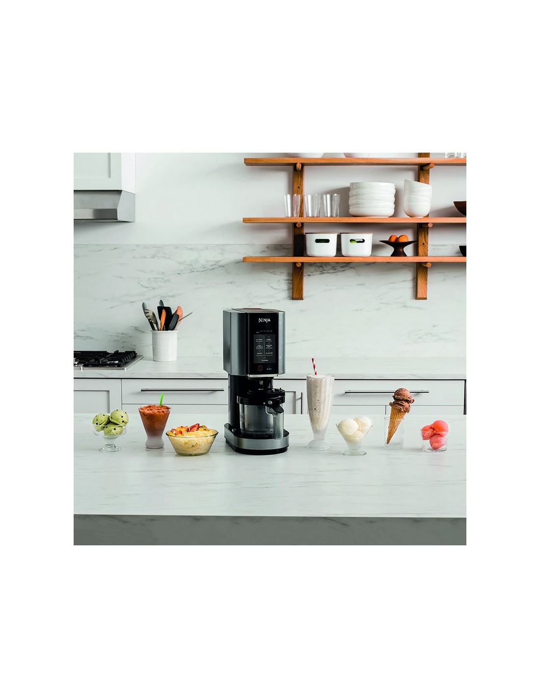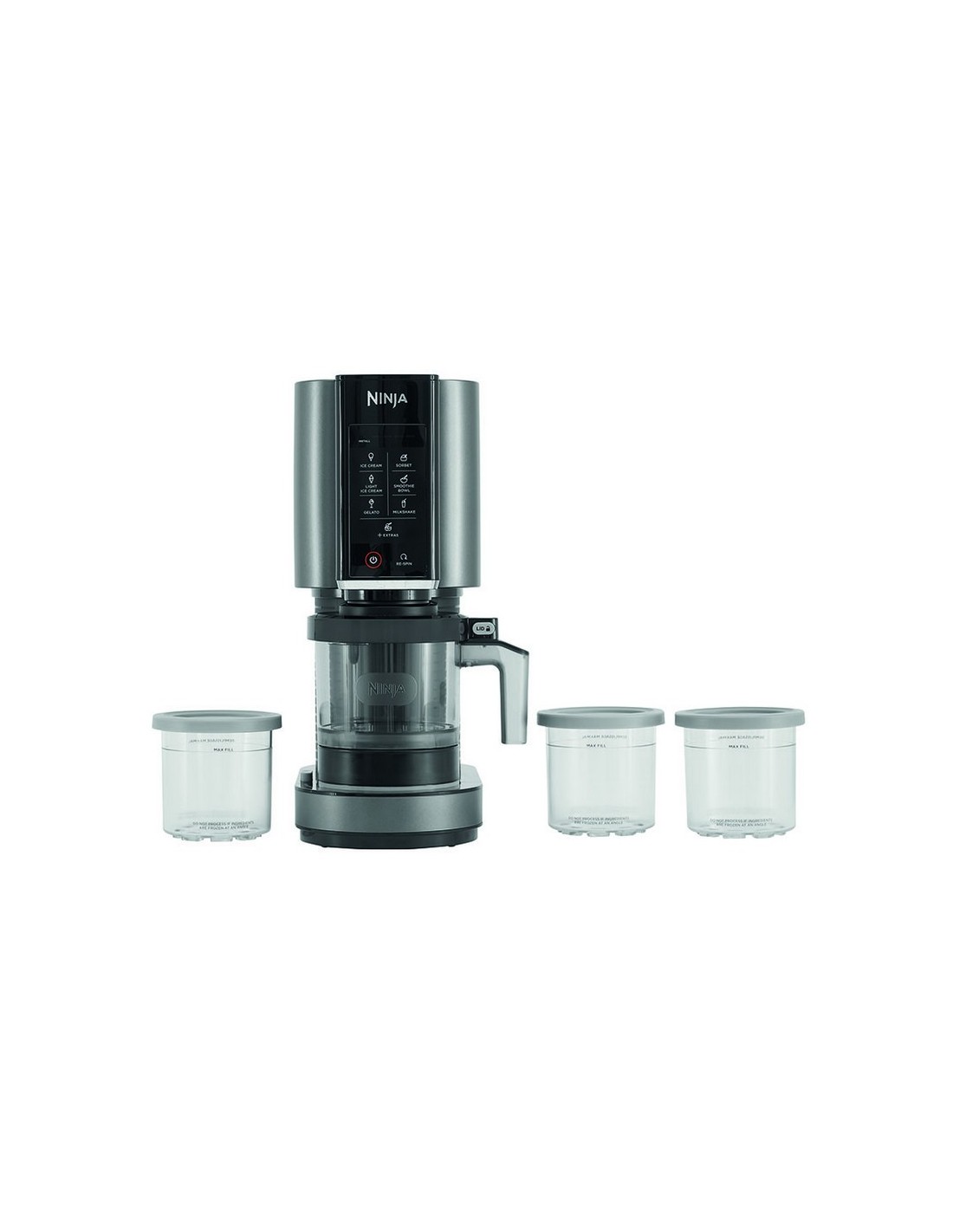 Heladera Ninja Creami 7 en 1. Incluye 3 tarrinas (sin BPA) con tapa, de 470 ml por tarrina. 88 cm de cable. 800 W.