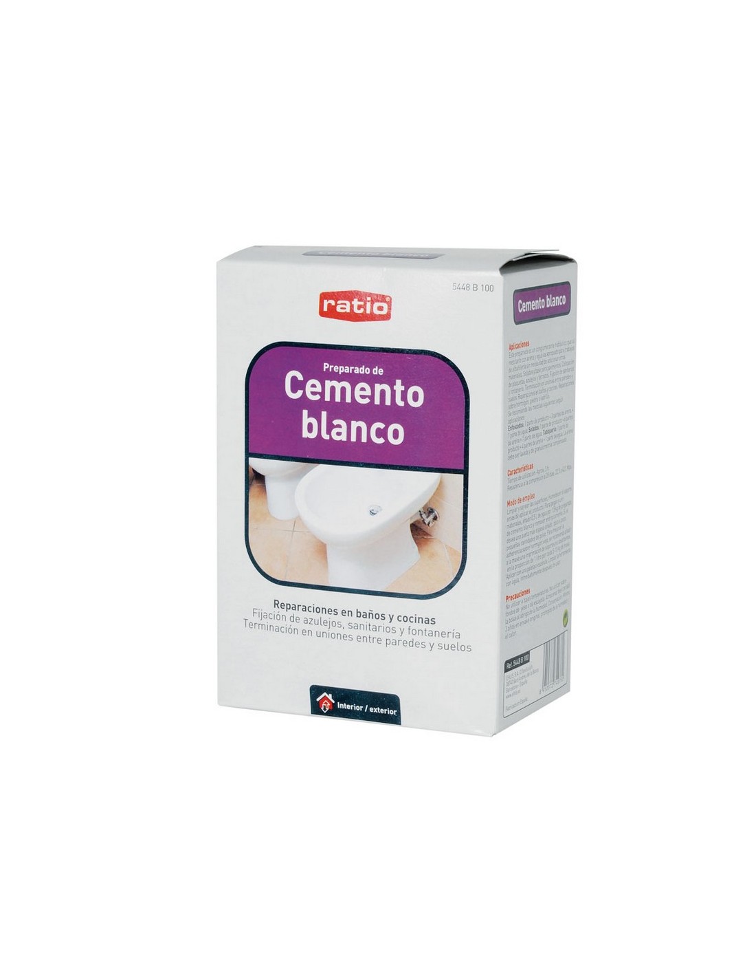 Cemento blanco RATIO. Pequeñas reparaciones en baños y cocinas; fijacion de azulejos, sanitarios, etc. Uso interior/exterior. Color blanco. 1,5 kg.