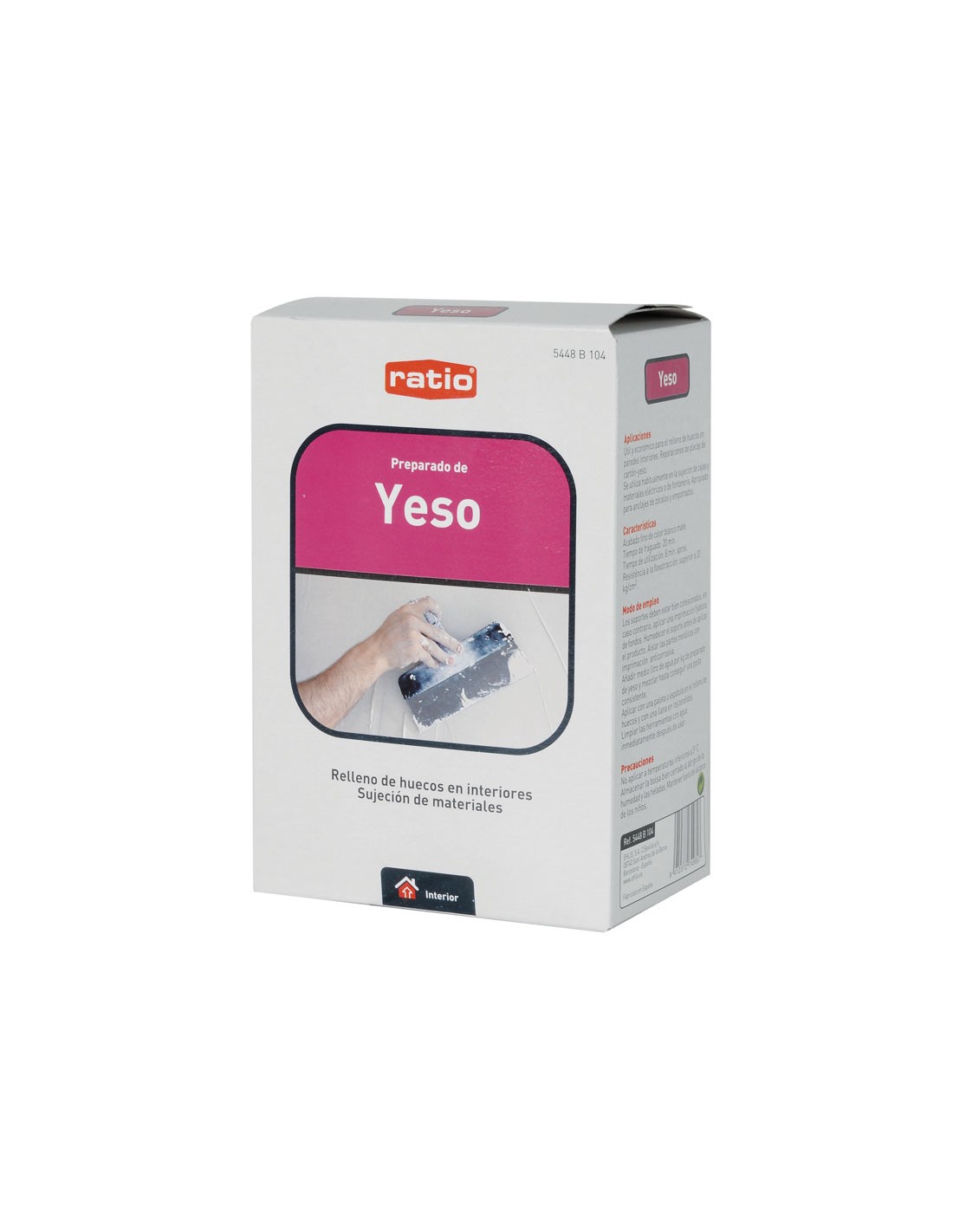 Yeso fino RATIO. Fijación de materiales y relleno de huecos en interiores. Uso interior. Color blanco. 1 kg.