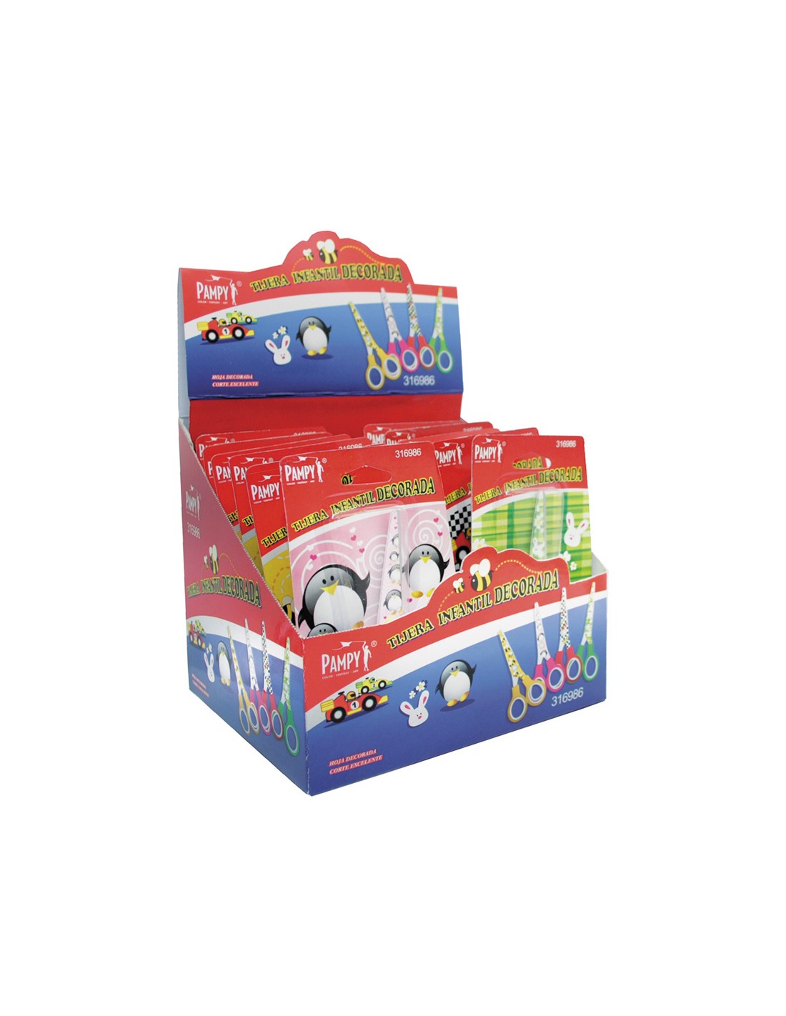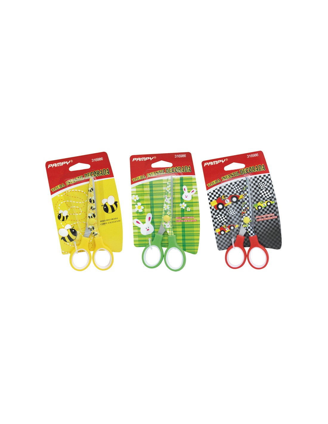 Tijera escolar Pampy Punta roma. Mango plástico. Diseños infantiles variados. 13 cm.