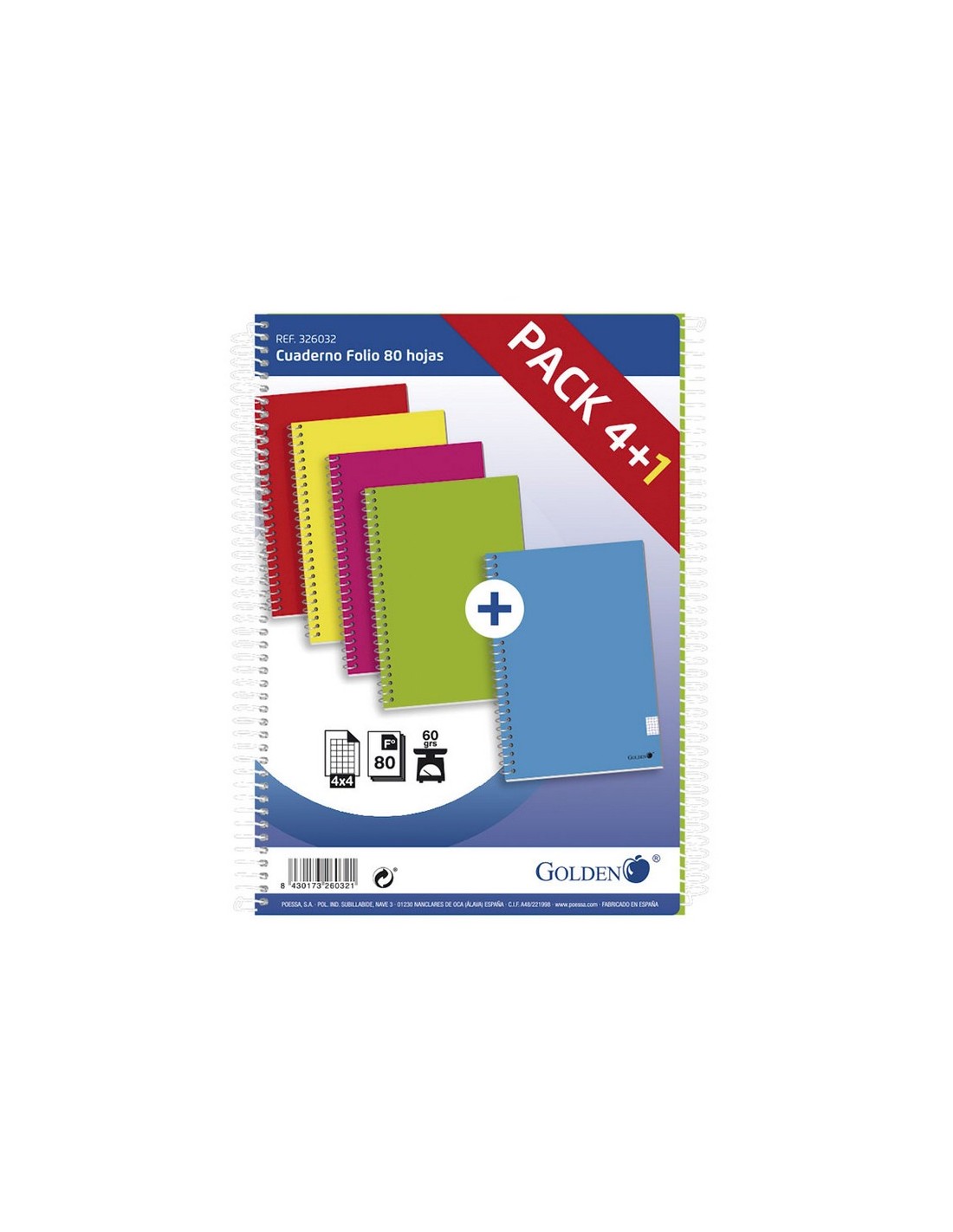 CUADERNO A4 80 HOJAS. CUAD. PACK 4+1