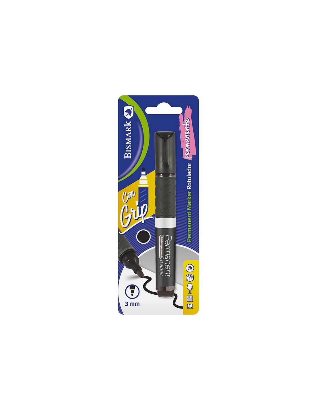 Rotulador permanente BISMARK Punta redonda 3 mm. Con Grip. Multisuperficies. 1 unidad. Color negro.