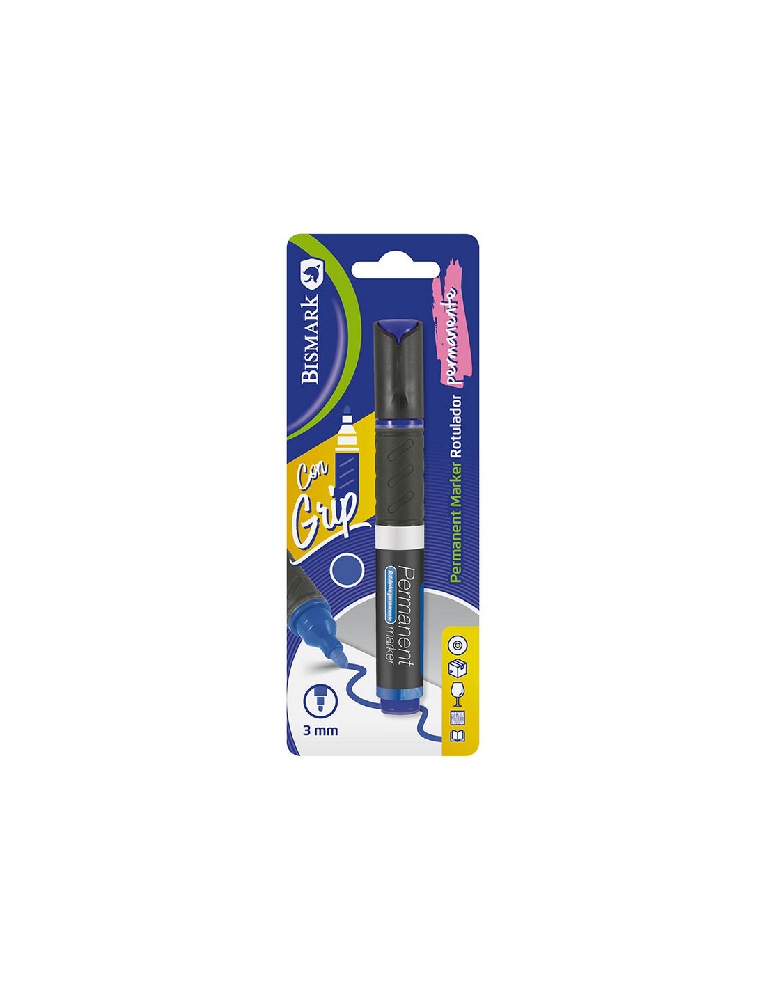 Rotulador permanente BISMARK Punta redonda 3 mm. Con Grip. Multisuperficies. 1 unidad. Color azul.