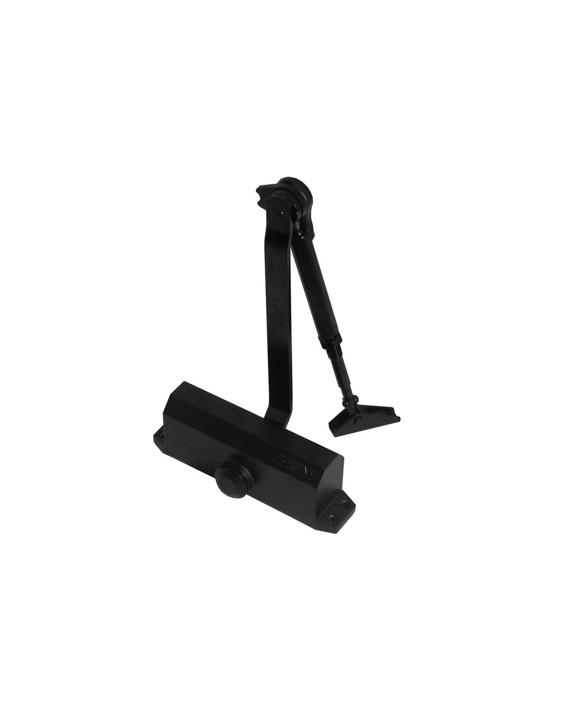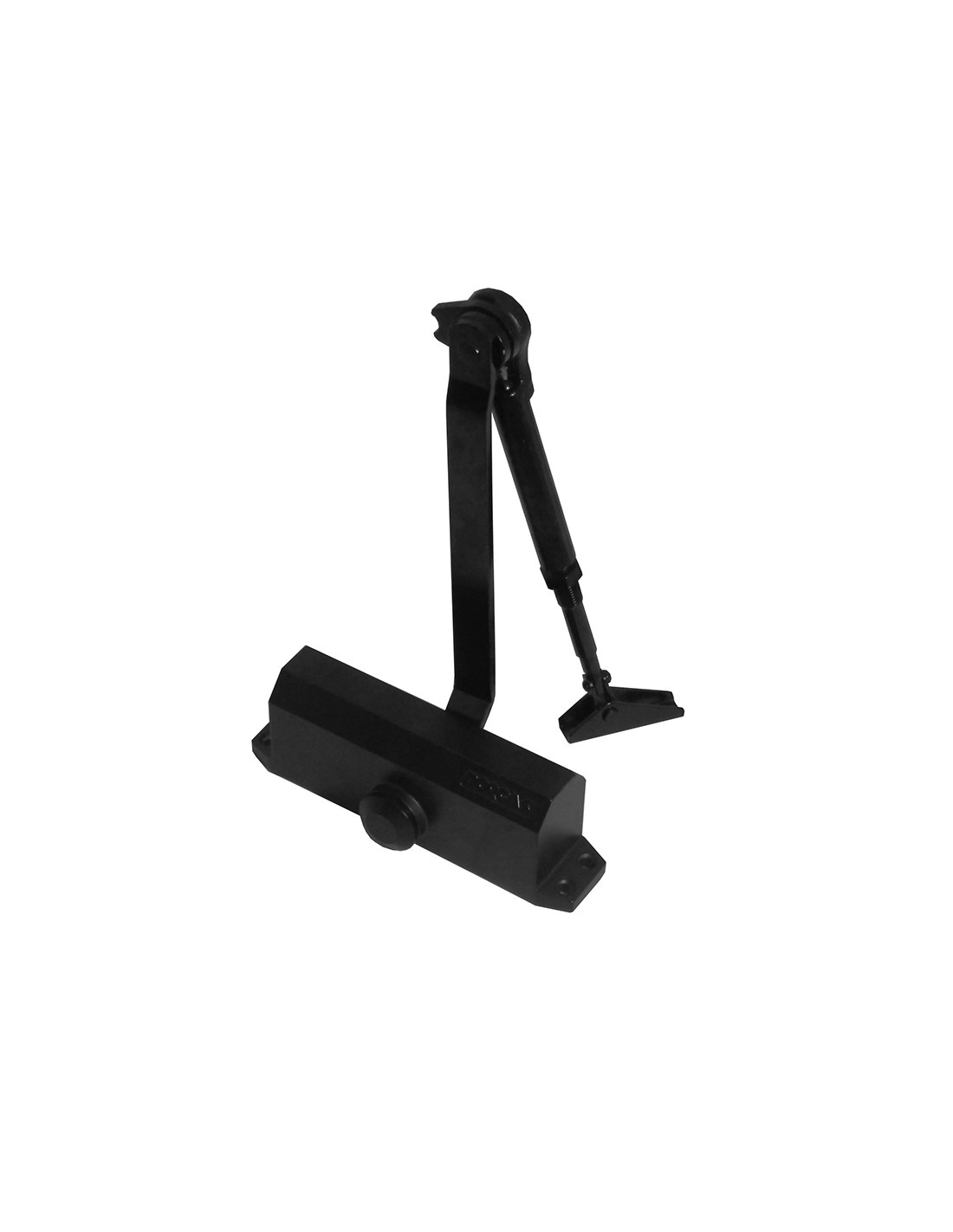 Cierrapuertas hidráulico DORCAS DC1. Control de cierre ajustable en dos fases. Fuerza EN 2-4. Puertas de 25 a 85 kg. Anchura puertas de 85 a 110 cm. Certificado CE puertas cortafuego. Cuerpo de aluminio y brazo de acero. Con retenedor. Negro.