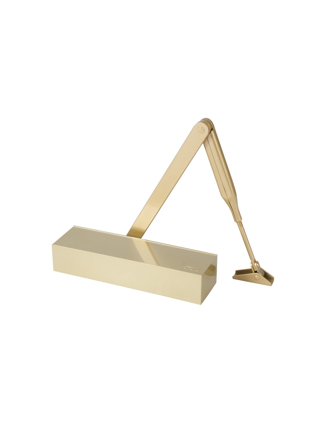 Cierrapuertas DORCAS TS-71. Mecanismo piñon-cremallera con brazo. Fuerza regulable EN 3-4. Anchura puertas hasta 110 cm. Puertas hasta 100 kg. Con retenedor. Plata.