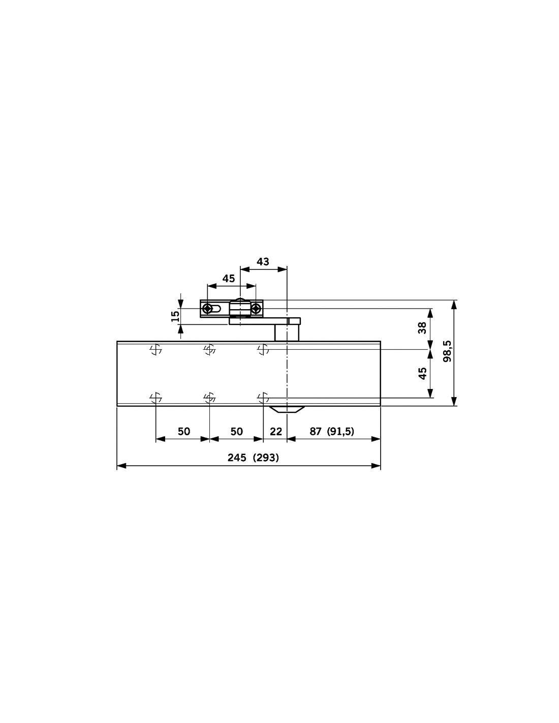 Cierrapuertas hidráulico DORMA TS-83. Mecanismo piñon-cremallera con frenado a la apertura integrado. Velocidad de cierre ajustable en 2 zonas diferentes y golpe final regulable. Fuerza EN 3-6.Uso recomendado en puertas hasta 180 kg. Ancho de puertas 95/110/125/140 cm. Cuerpo. Plata.