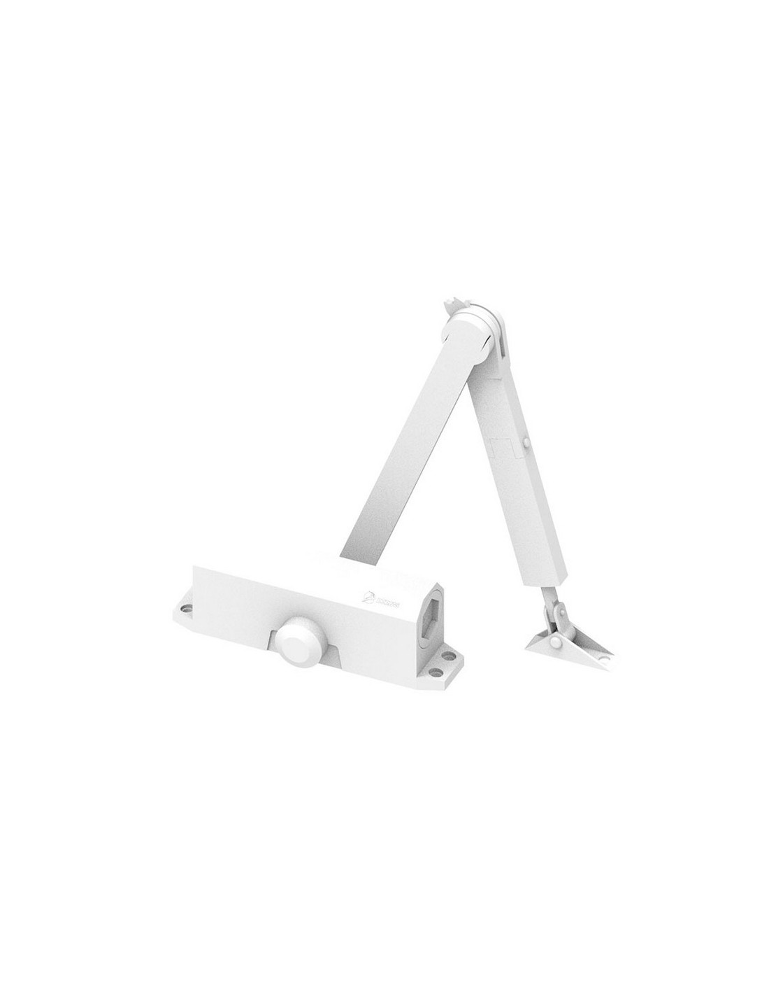 Cierrapuertas hidráulico DORCAS DC1. Control de cierre ajustable en dos fases. Fuerza EN 2-4. Puertas de 25 a 85 kg. Anchura puertas de 85 a 110 cm. Certificado CE puertas cortafuego. Cuerpo de aluminio y brazo de acero. Con retenedor. Blanco.