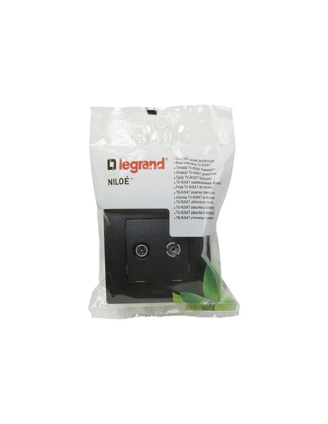 Mecanismo de empotrar LEGRAND serie Niloé Negro Diseñado para facilitar el montaje en el hogar. El mecanismo e interruptor Niloé ayuda a reducir el impacto medioambiental durante el ciclo de vida del producto. Toma TV-R/SAT intermedia.