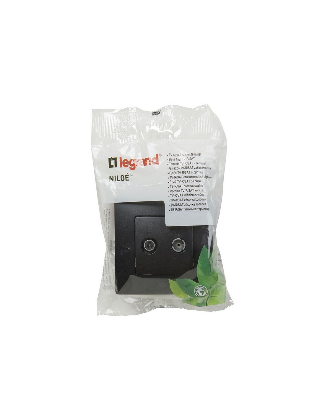 Mecanismo de empotrar LEGRAND serie Niloé Negro Diseñado para facilitar el montaje en el hogar. El mecanismo e interruptor Niloé ayuda a reducir el impacto medioambiental durante el ciclo de vida del producto. Toma TV-R/SAT terminal.