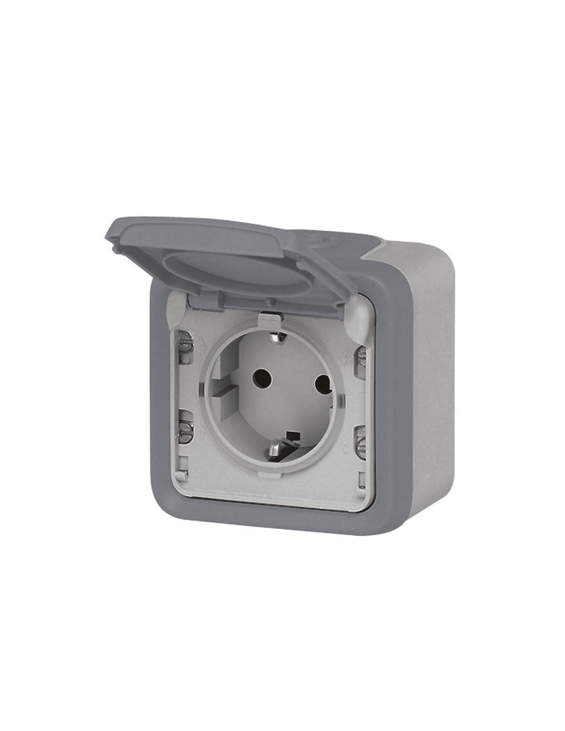 Caja estanca LEGRAND Plexo TMIP55. Nueva generación que mejora la instalación, robustez y estanqueidad, aportando nuevos conceptos de montaje y diseño. Base enchufe TT lateral.