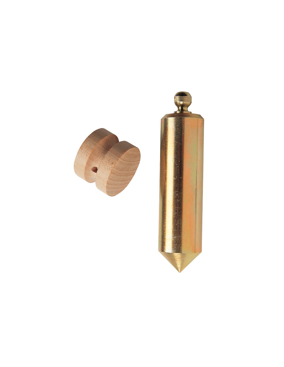 Plomada metálica Hierro. Cilíndrica. Punta y pomo. Modelos con nuez o con placa metálica de sujección. Con nuez. 700 gr.