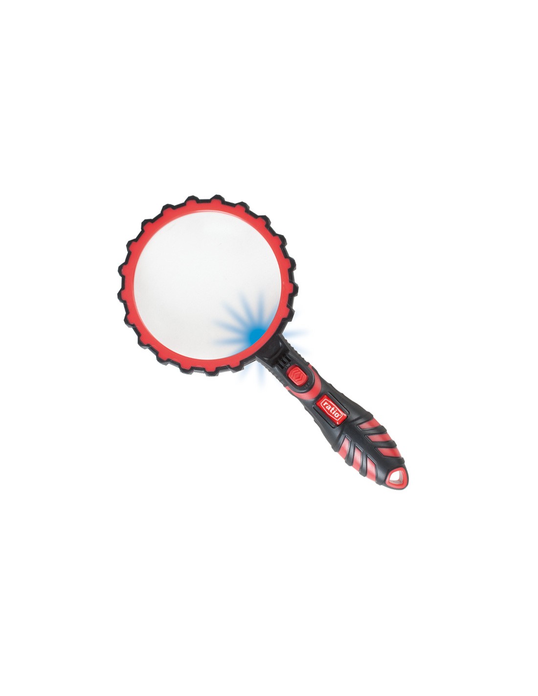 Lupa con luz Led RATIO 5999 Ideal para electrónica y mecánica. 3 pilas botón LR44 (Incluidas). Lente cristal ø 75 mm. \r\nAumento: x 2,2. \r\nDioptría: 4,76 D.