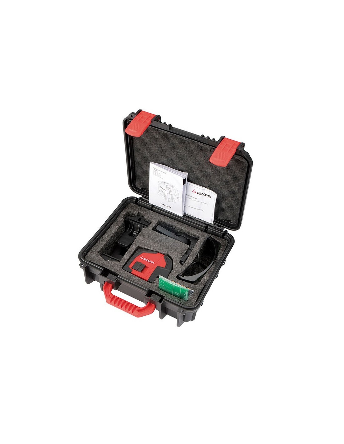 Nivel láser cruz BELLOTA 30 m Autonivelante en superficies inclinadas de hasta 4º, con alarma visual de nivel y bloqueo de péndulo. Garantiza tu trabajo de nivelación hasta 30 metros (50 metros con receptor). Haz láser Clase II con precisión de 0,3 mm/m y carcasa robusta con topes laterales anti impacto y protección IP54 a polvo y salpicaduras de agua desde todos los ángulos. Kit completo, incluye maleta, rosca 1/4', soporte magnético, pinza, gafas, placa reflectora magnética, manual de instrucciones y 4 pilas 1,5V AA. 30 m.