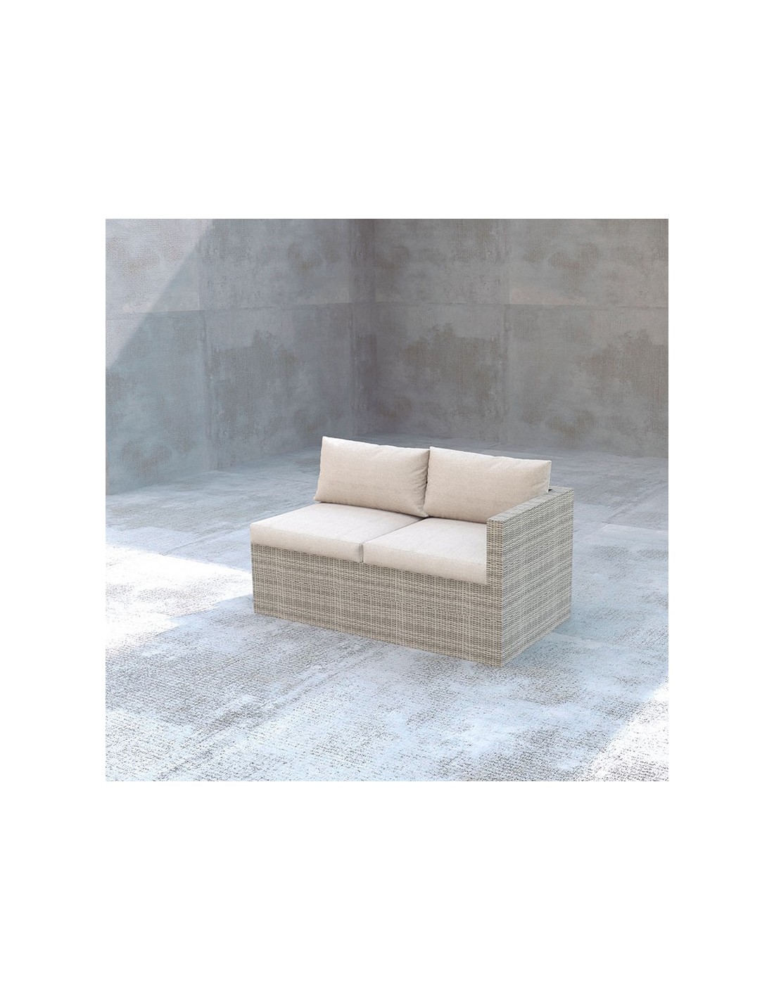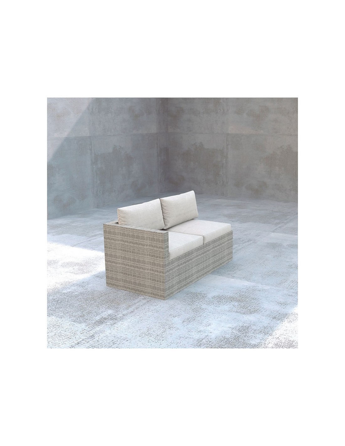 Conjunto de jardín Fidji Acero/ratán sintético color gris. Cojines de poliéster incluidos. Cojín asiento grosor: 8 cm.. Cojín respaldo grosor: 15 cm. 2 sofás dobles 135x72xh.64 cm.
