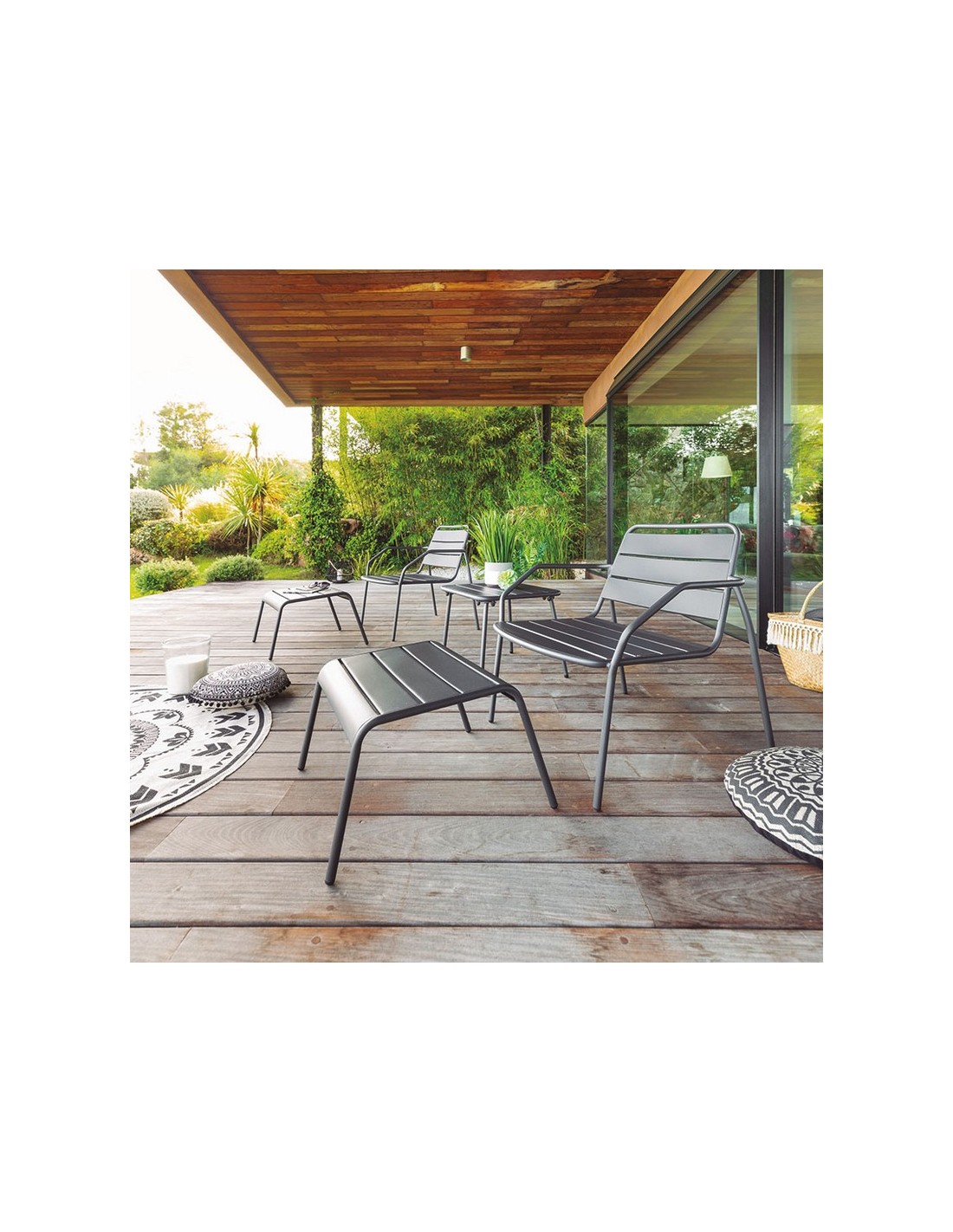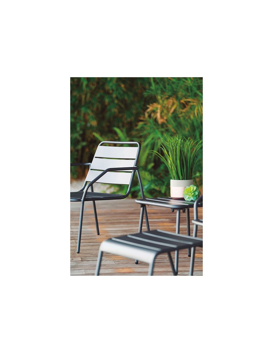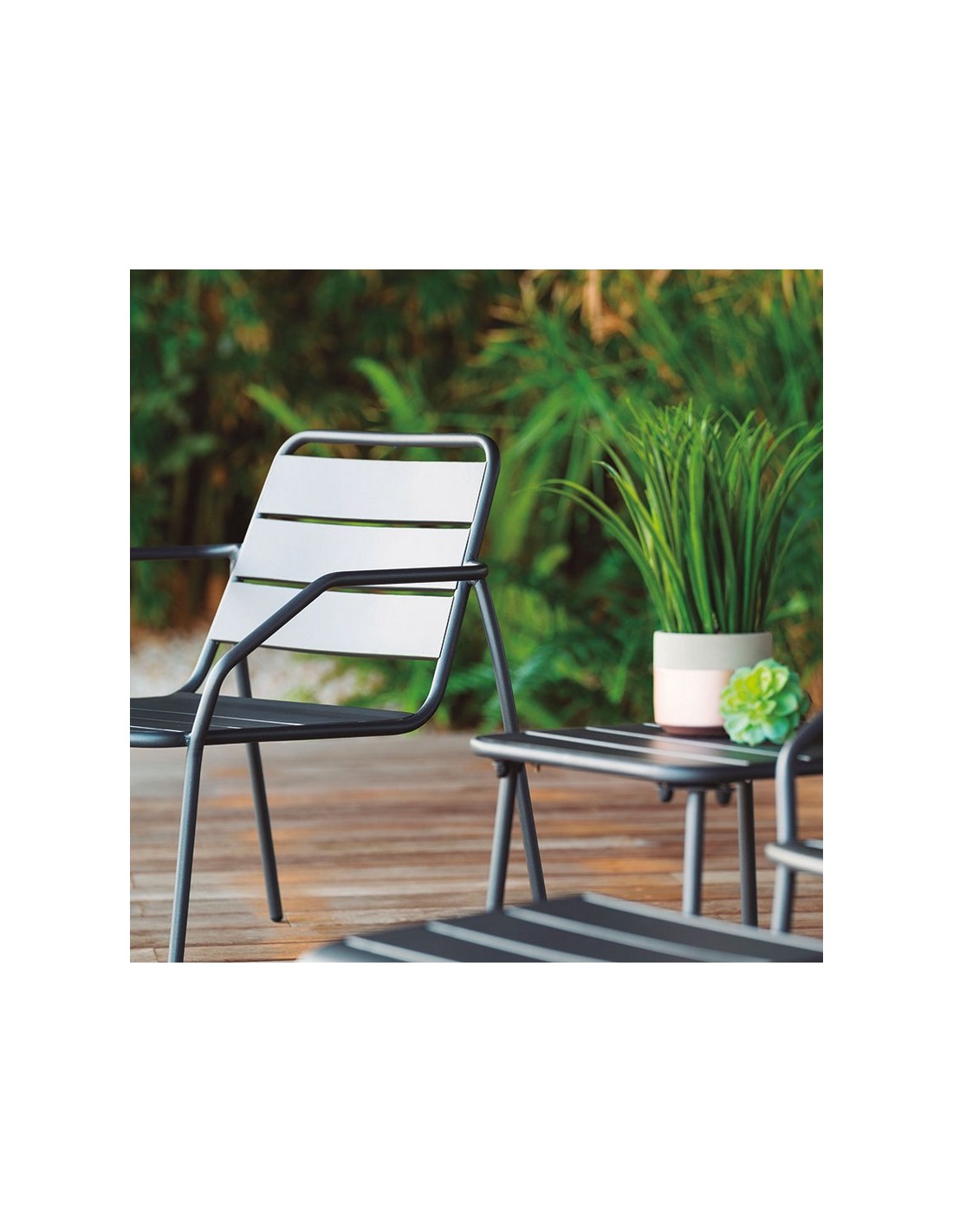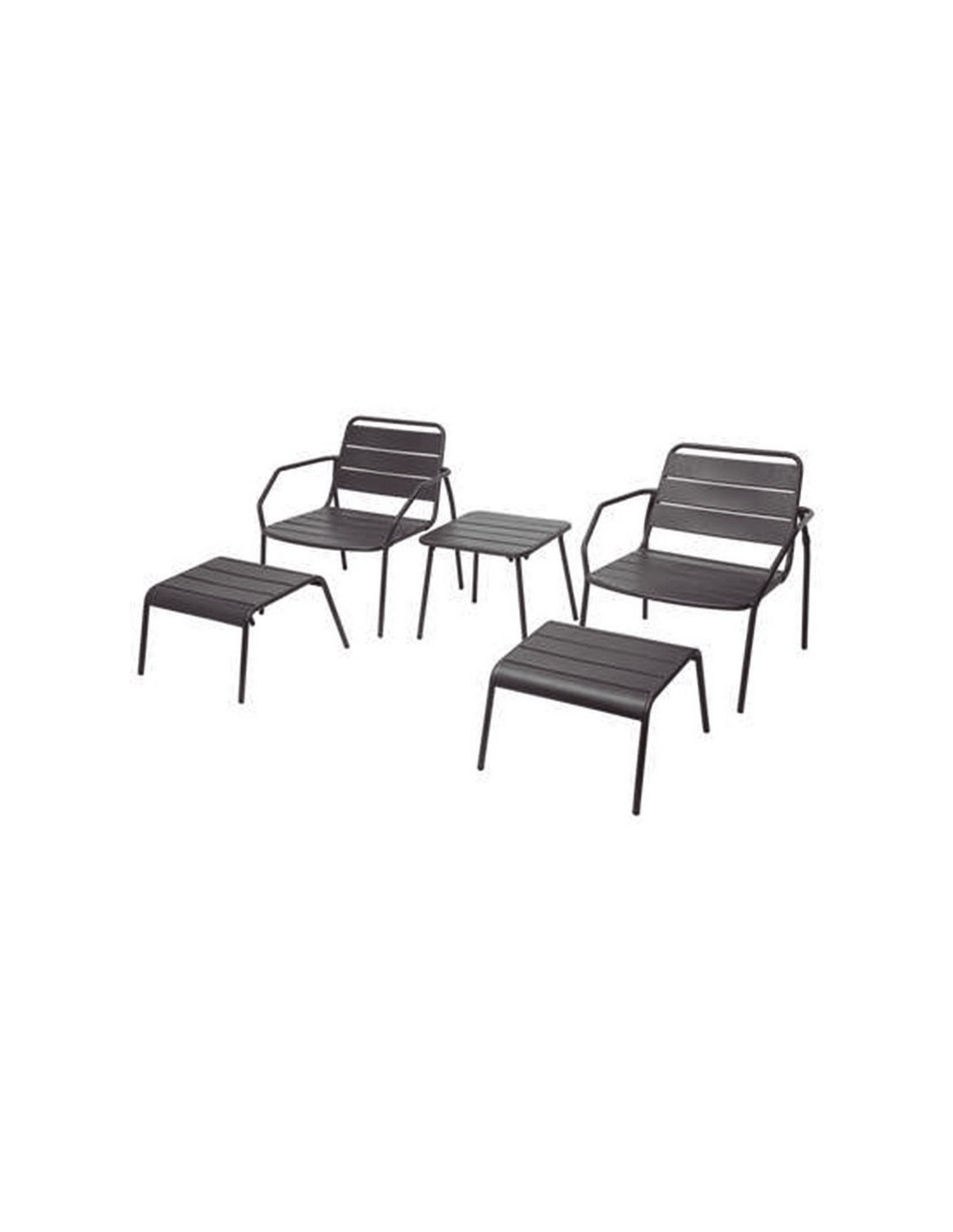 Conjunto Relax duo Estructura metálica en acero color gris antracita. Conjunto 5 piezas. Apilable. 2 sillones 68x67xh.70,5 cm.