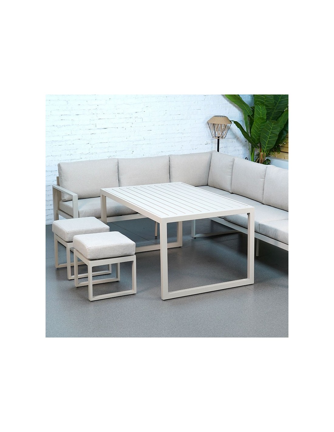 Conjunto jardín Liam 5 piezas Conjunto mueble jardín 5 piezas. Aluminio. Cojines incluídos. Tela olefina. Color Gris.