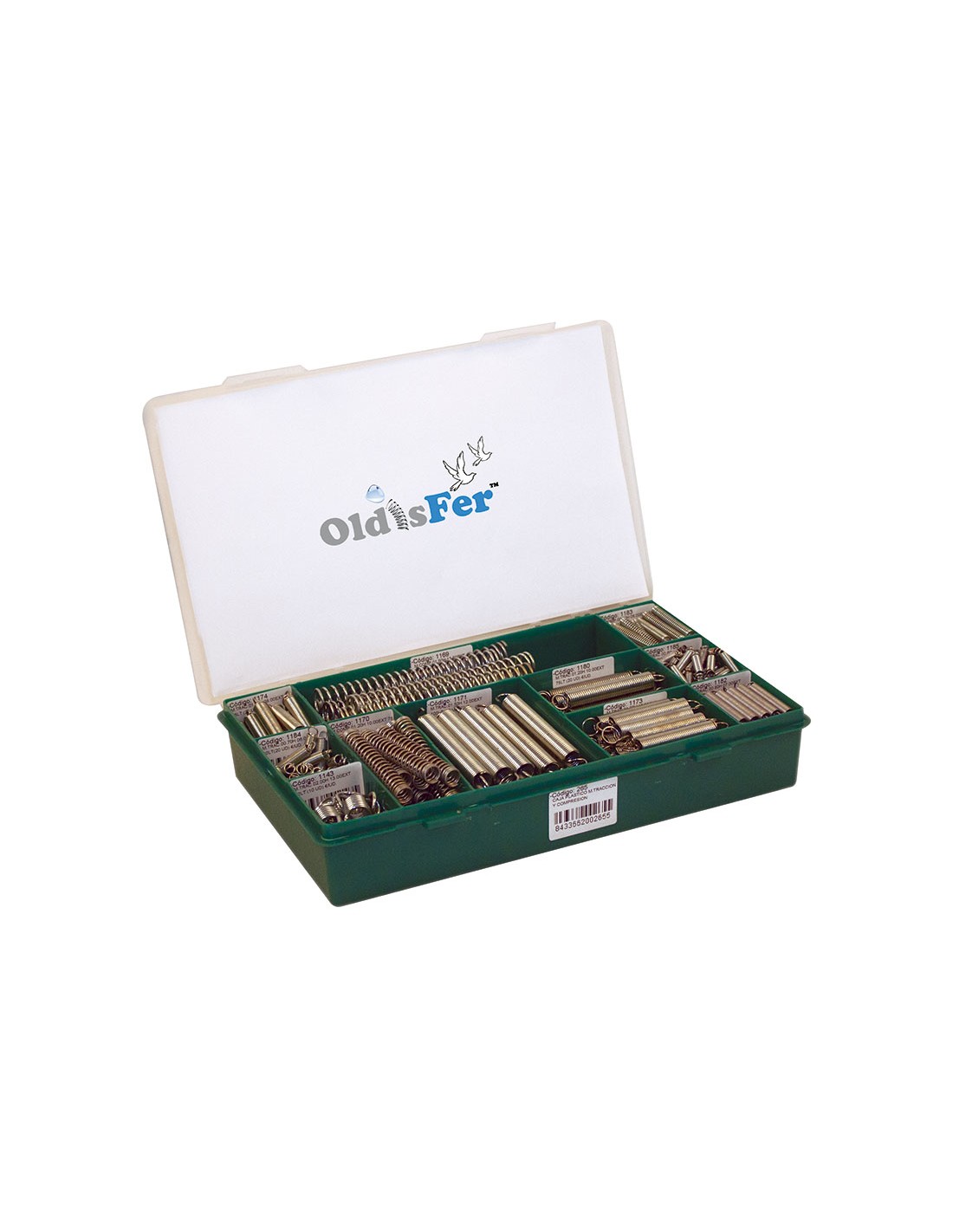 Muelles de tracción y compresión OLDISFER. Estuche 339 unidades. Surtido de medidas más corrientes adaptables a varios usos: doméstico, camping, juguetes, colegio, automoción, agrícola.. 11 modelos.
