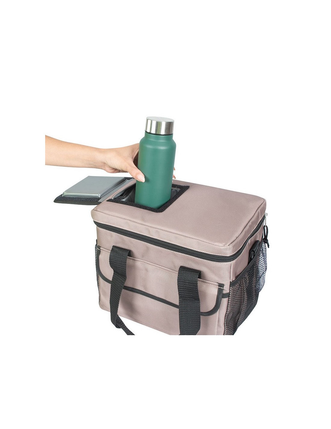 Nevera térmica flexible HABITEX Fuji Tejido PEVA y lámina aislante de 9 mm. Bolsillo frontal, malla lateral y ventana abrefácil en medidas grandes. 15 l. Caqui. 29x22xh.24 cm.