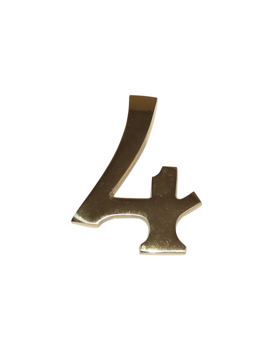 Numeración para edificios EHL Latón pulido. Capa barniz protector. Altura 10 cm. Sujeción invisible mediante puntas roscadas. Nº 4.