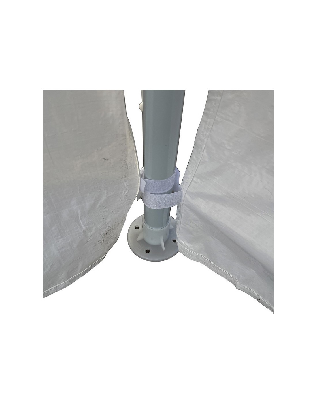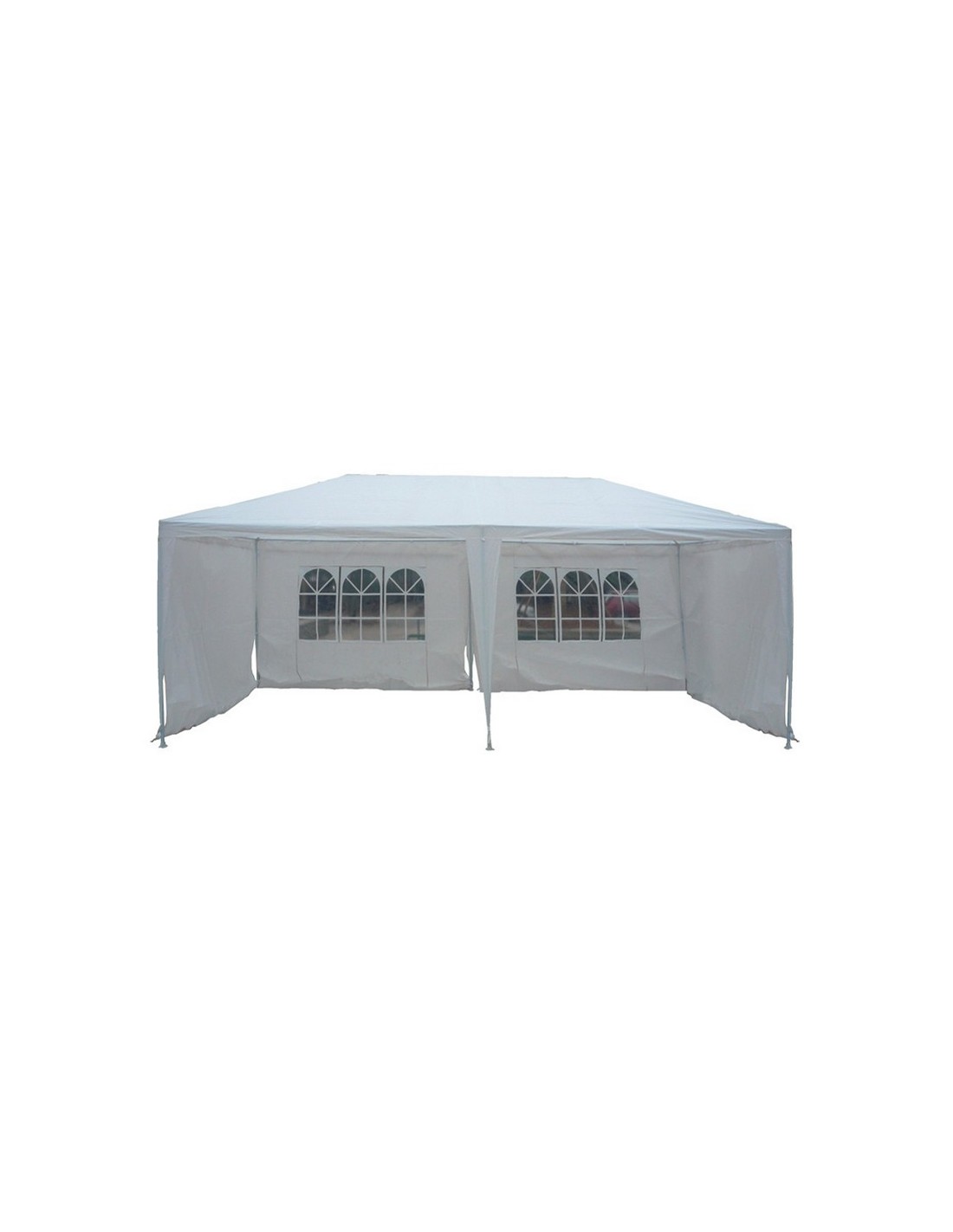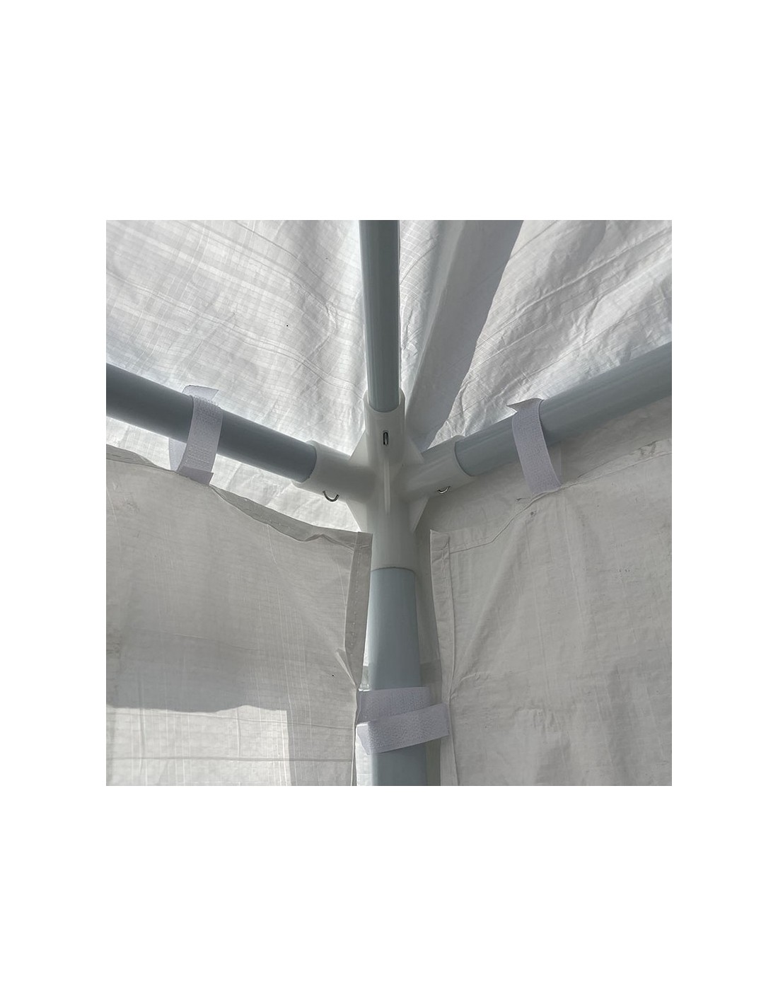 Pérgola de jardín 6x3xh. 2,70 m. Estructura metálica. Toldo de rafia blanca. Cerramiento por los 3 lados con cortinas laterales.