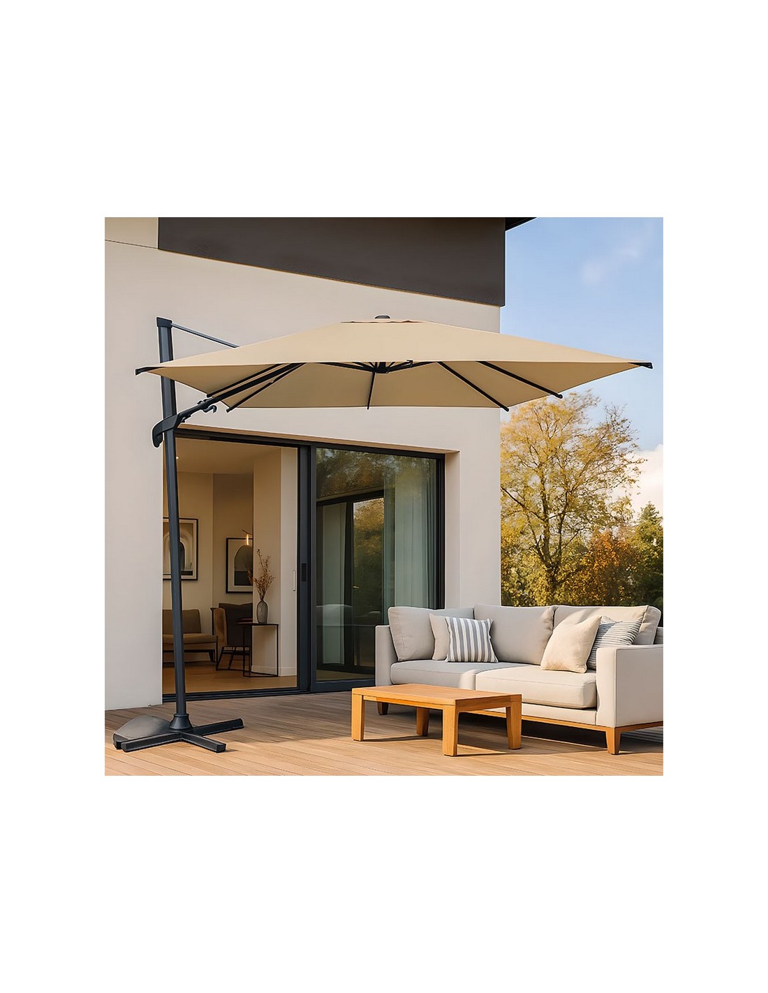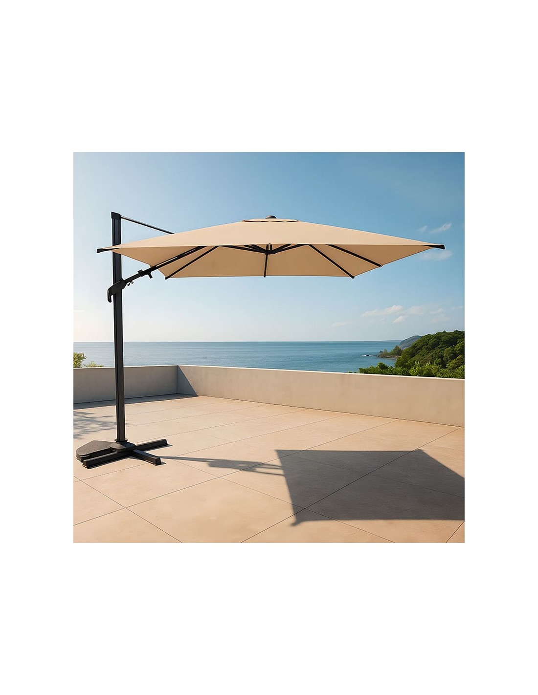 Parasol colgante aluminio Viena Toldo poliéster. Base giratoria 360º. Apertura mecánica manivela. Función inclinación. No incluye funda. Crudo/antracita. 295x303xh.252/256 cm.