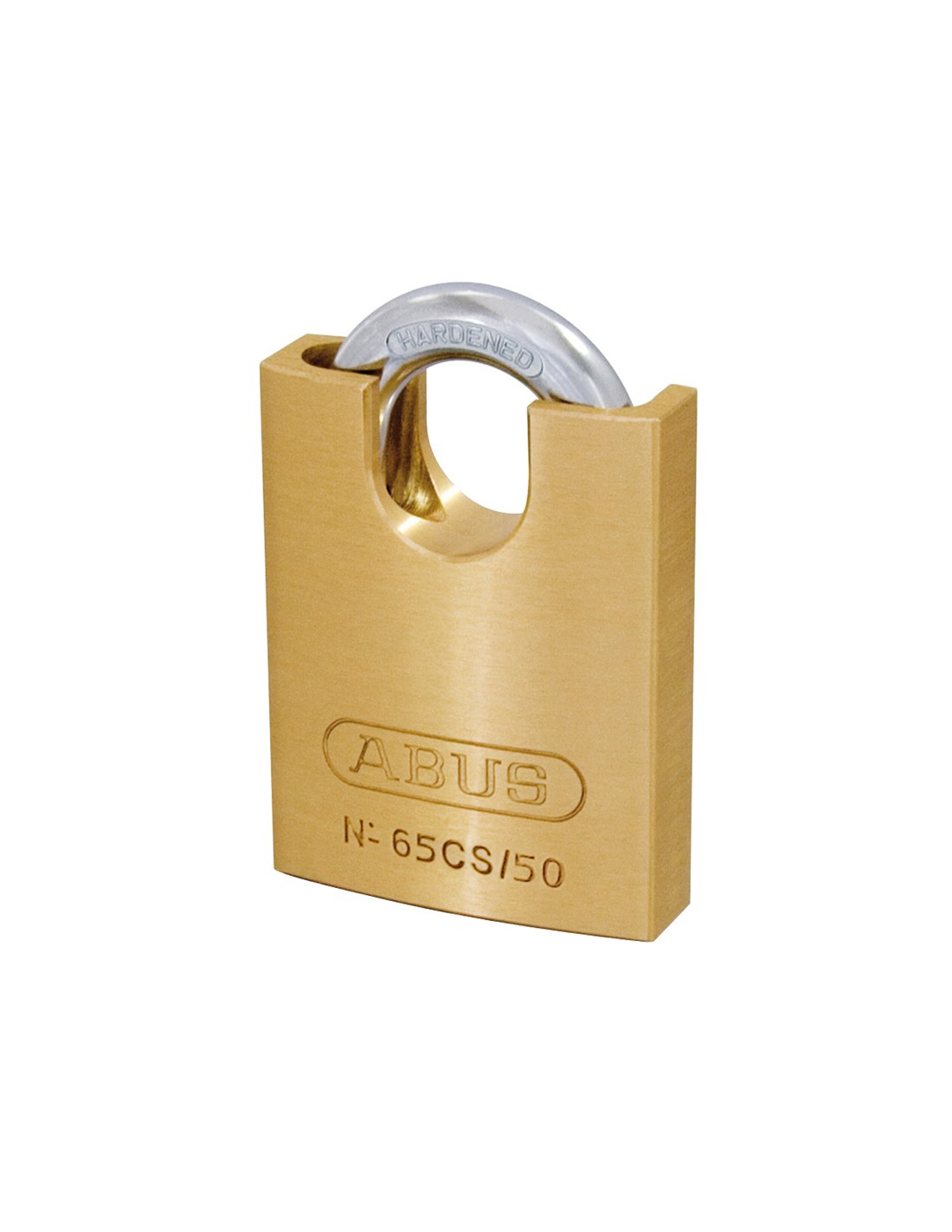 Candado ABUS 65 CS. Cuerpo de latón macizo. Componentes interiores de materiales resistentes a la corrosión. Cilindro de pitones de precisión. Arco de acero endurecido protegido para una mayor resistencia a la cizalla y al apalancamiento. 50 mm. Arco protegido.