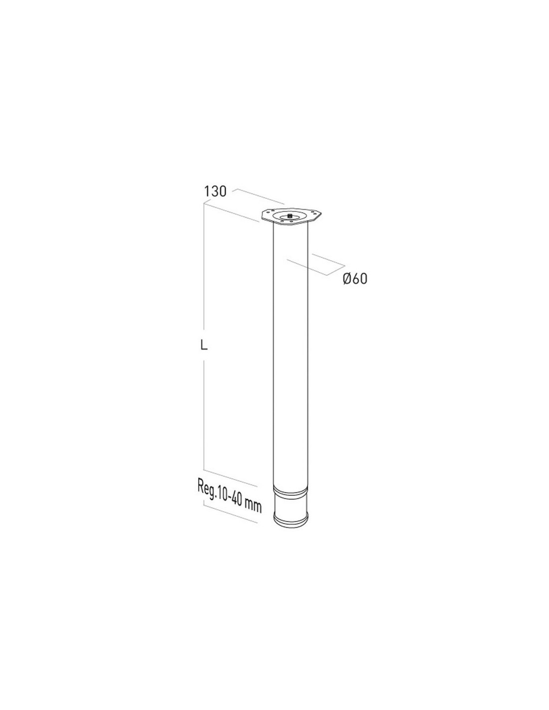 Pata mesa NESU Acero pintado. Regulación inferior 10-40 mm. ø 60xh.71 cm. Negro. Caja de 4 unidades.