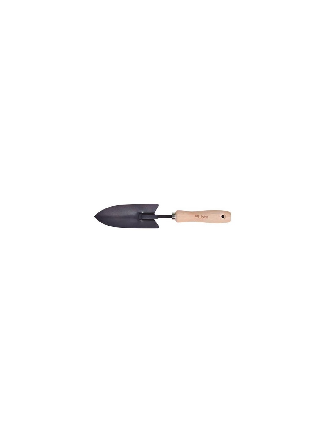Herramienta de jardín LISTA serie Advance Acero de alta calidad y resistencia. Mango madera resistente y barnizado fijado con virola metálica, y con orificio para colgar y / o almacenar. Pala estrecha, 34x7,5x5 cm.