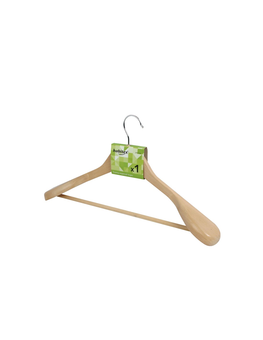 Percha recta 45 cm con forma especial trajes. Madera natural. 1 unid.