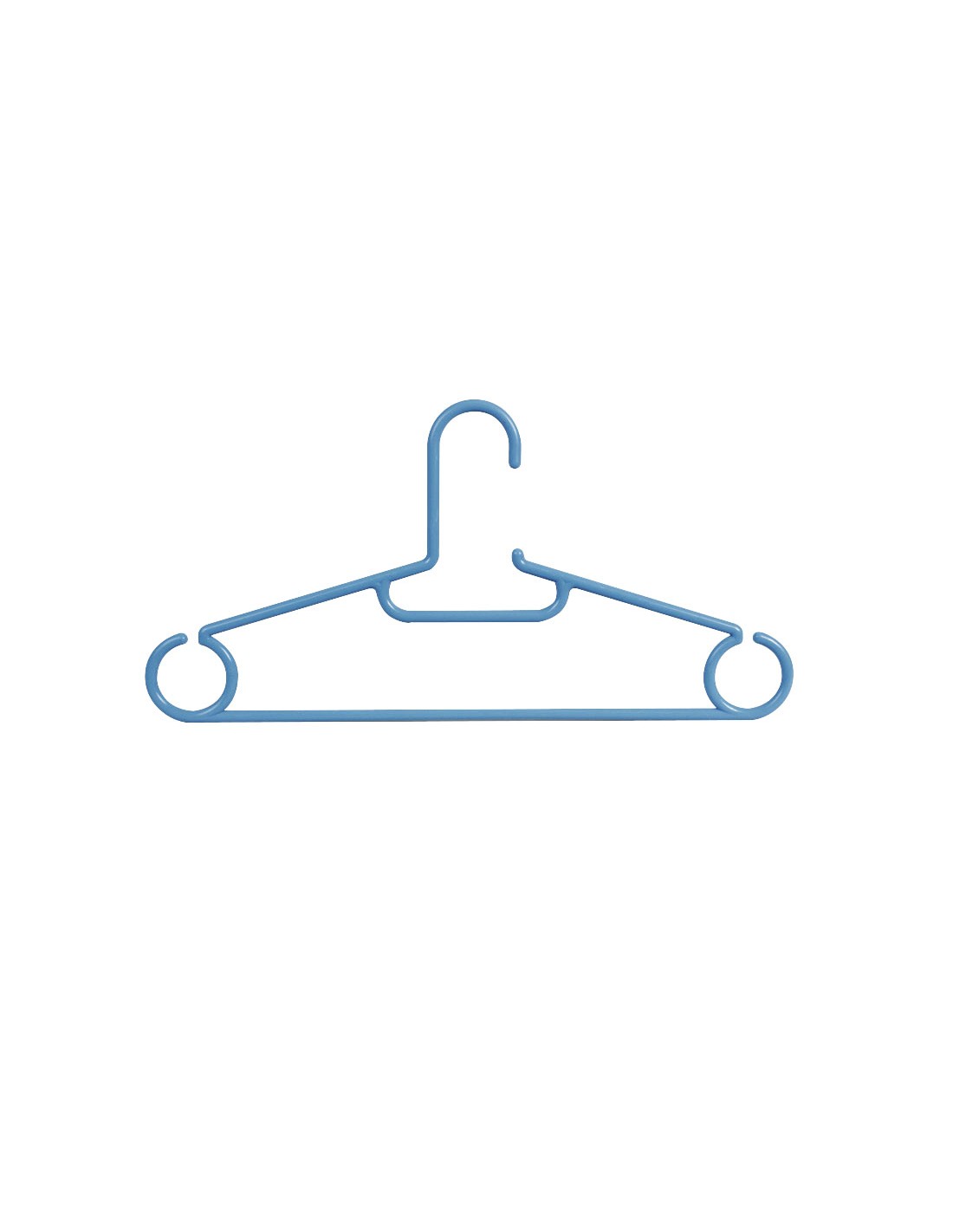 Percha recta 40 cm con barra y ganchos laterales. Plástico azul. 5 unid.
