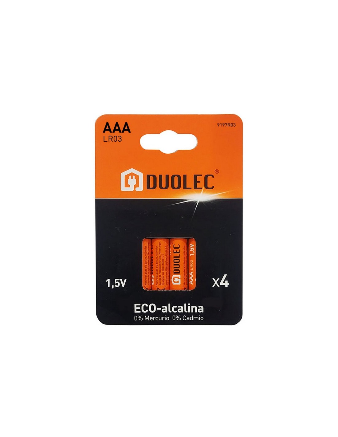 Pila alcalina DUOLEC Ecológicas. 0% mercurio, 0% cadmio. Ideal para dispositivos de alto consumo. Blíster cartón. AAA LR03 1,5 V. 4 unid.