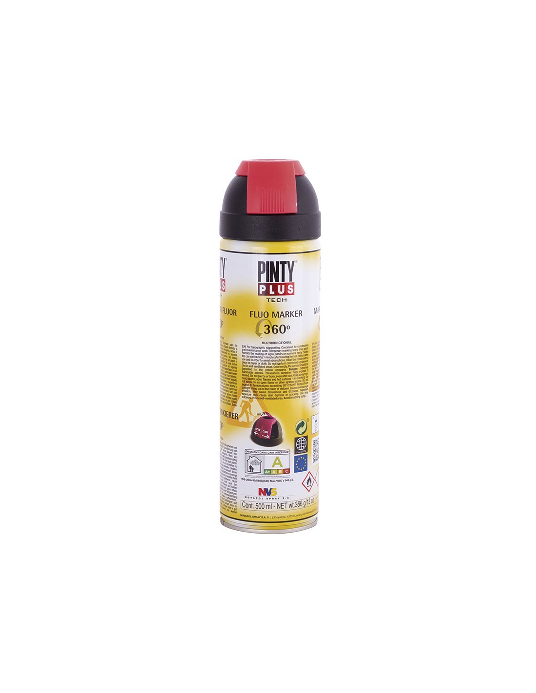 Pintura topográfica fluorescente NOVASOL Pintyplus Tech. Para señalización topográfica y marcado temporal sobre diferentes superficies.. Resistente a bajas temperaturas. Pintura muy visible que permite la lectura de signos, letras o números con facilidad. Colores fluorescentes mates de alta luminosidad. Vá Rojo 400 ml.