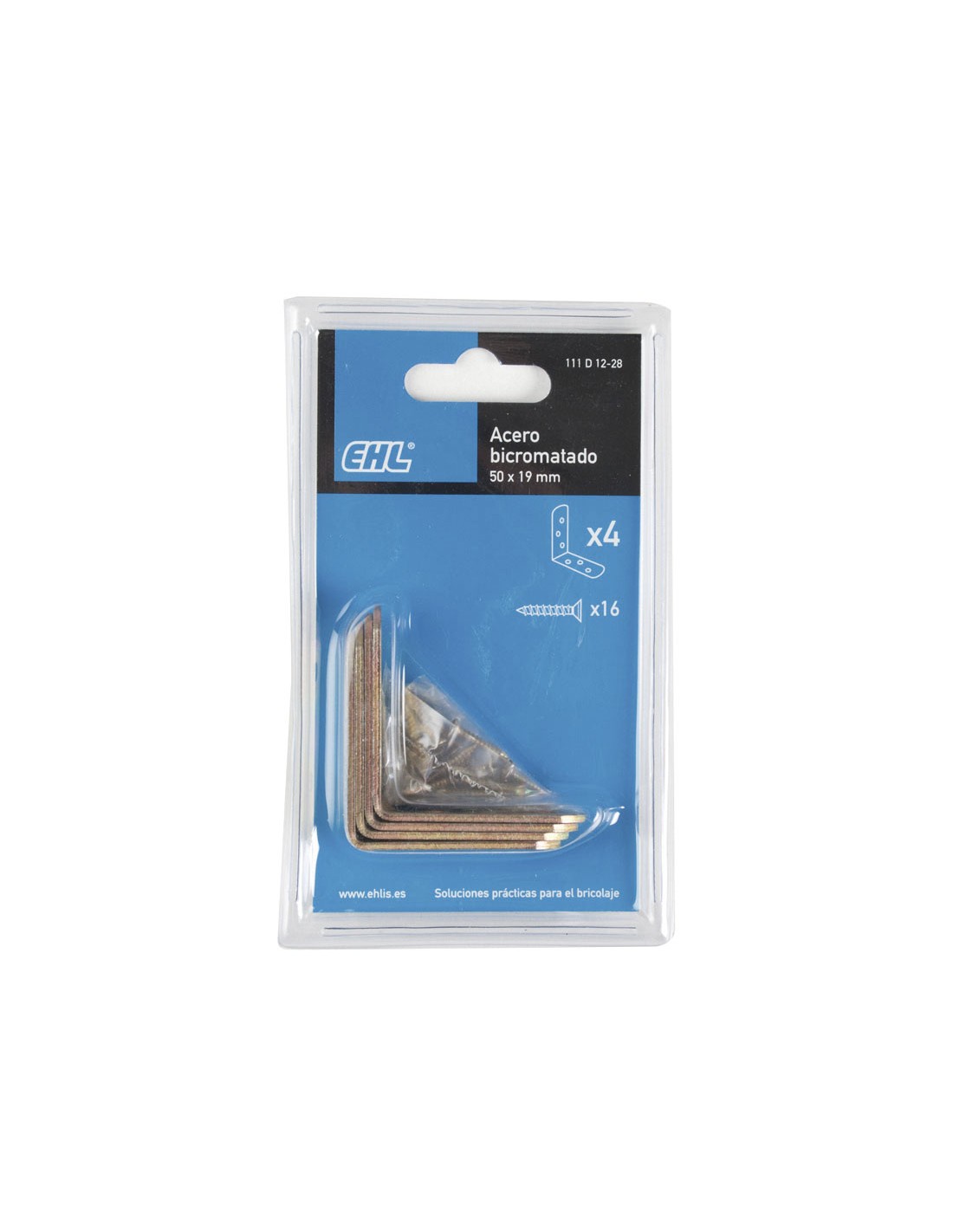 Escuadra metálica punta redonda EHL. Bicromatada. 50x50 mm. 4 unid. Con tornillos