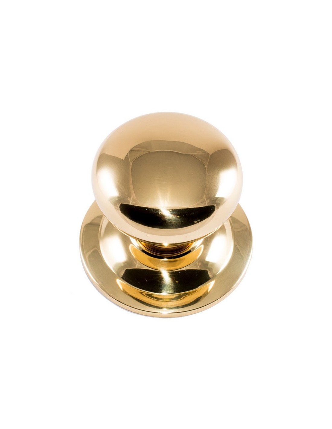 Pomo puerta entrada MICEL PP02 Placa y pomo unido M8. ø 70 mm. Latonado pulido.