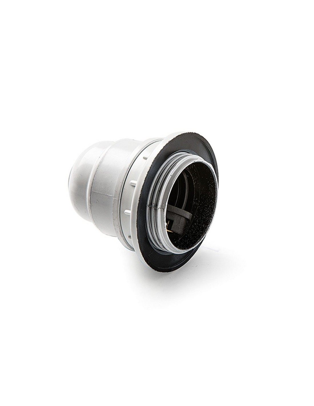 Portalámparas roscada FAMATEL Rosca E-27. Extremo (con arandela montada). Blanco.