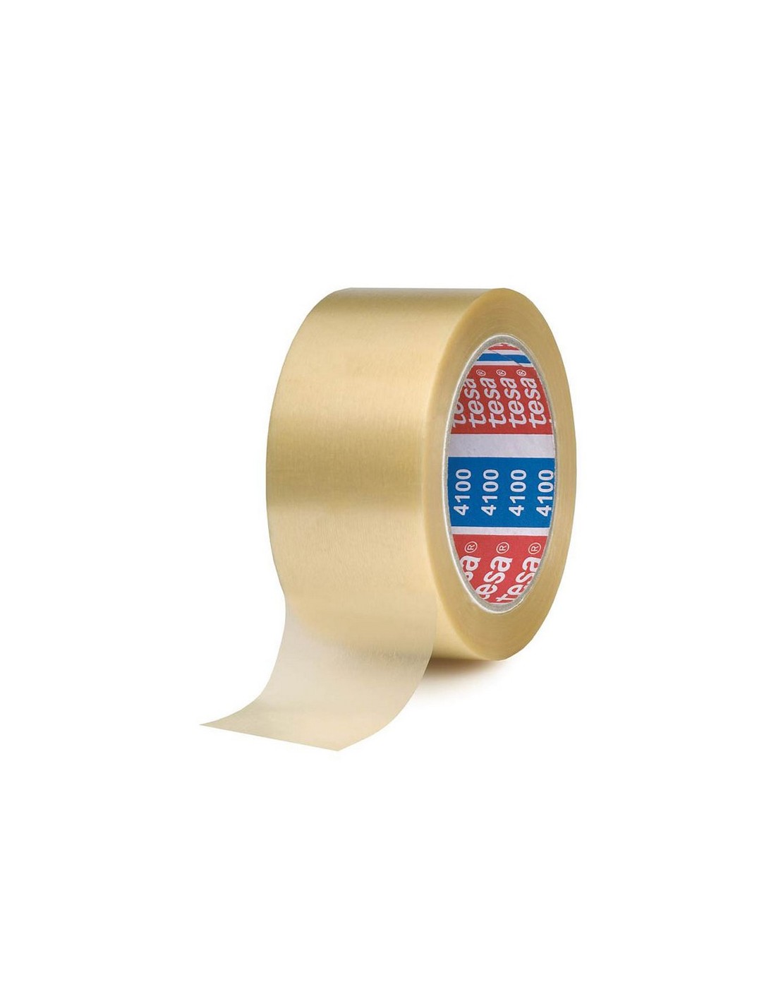 Precinto embalaje TESA 4100 rugoso Rollos de 66 m x 50 mm. Apto tanto para dispensadores manuales como automáticos. La combinación de un film de PVC rugoso y un fuerte adhesivo a base de caucho natural proporciona a la cinta de embalar exactamente el nivel de rendimiento exigido entre los profesionales del embalaje. Desbobine de forma suave. Transparente. Se presenta en caja de 6 unidades.