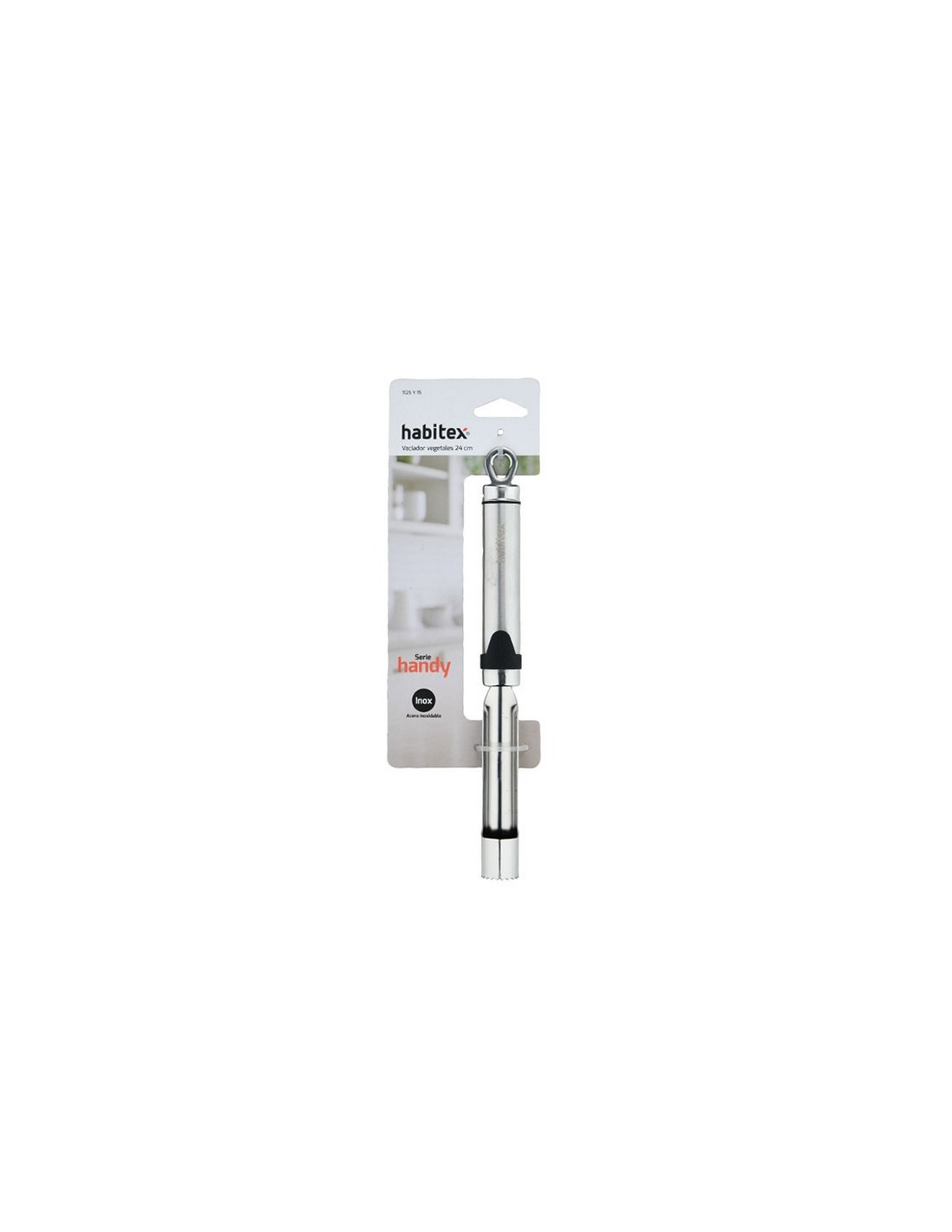 Vaciador vegetales HABITEX Acero inox de alta resistencia. Mango ovalado con colgador. Aptos para lavavajillas. 24 cm.