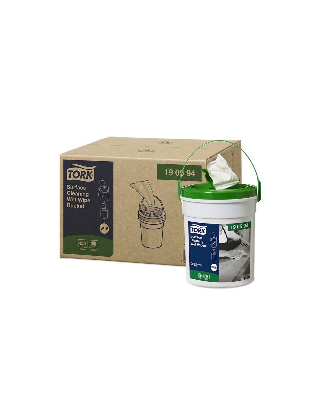 Paño húmedo para limpieza de superficies TORK en cubo Paños/toallitas húmedas de calidad premium para limpieza de superficies. Protegen las superficies delicadas y los aparatos electrónicos. Calidad profesional. Número de servicios: 58. Pack 4 cubos 15,7 m x 13,5 cm.